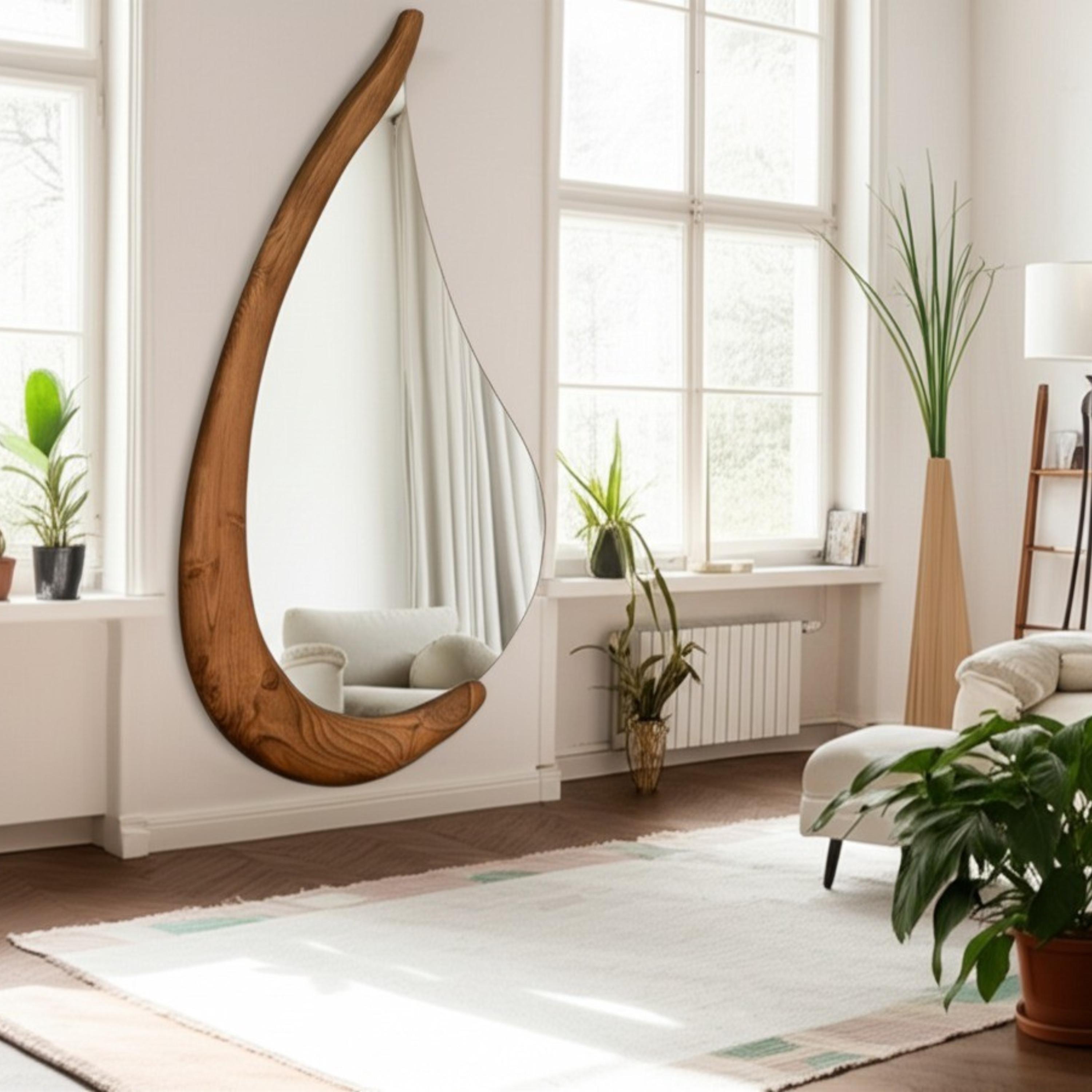 Specchio in legno a forma di goccia per ingresso, specchio con corn...