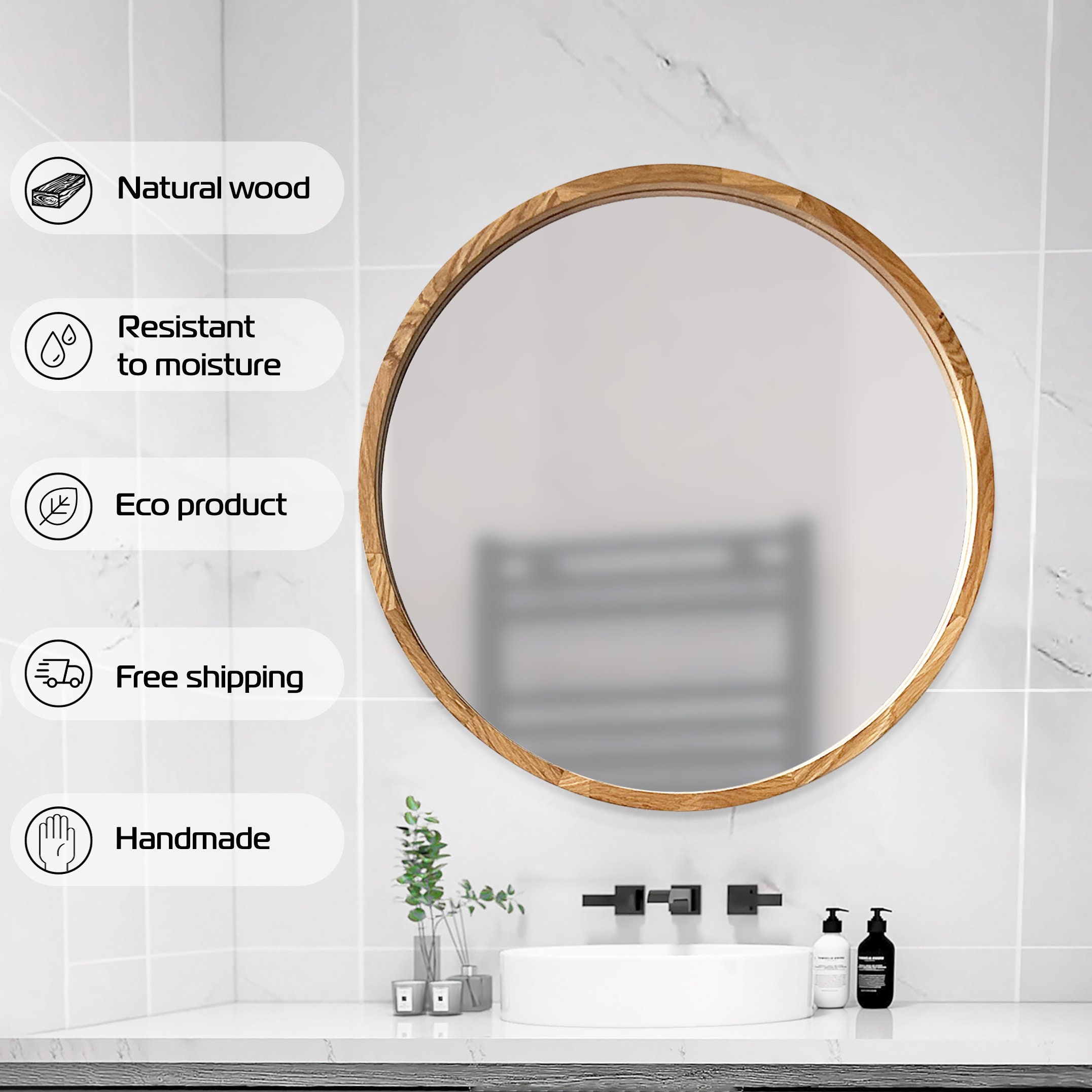 Specchio da bagno rotondo, specchio in legno, specchio rotondo in l...