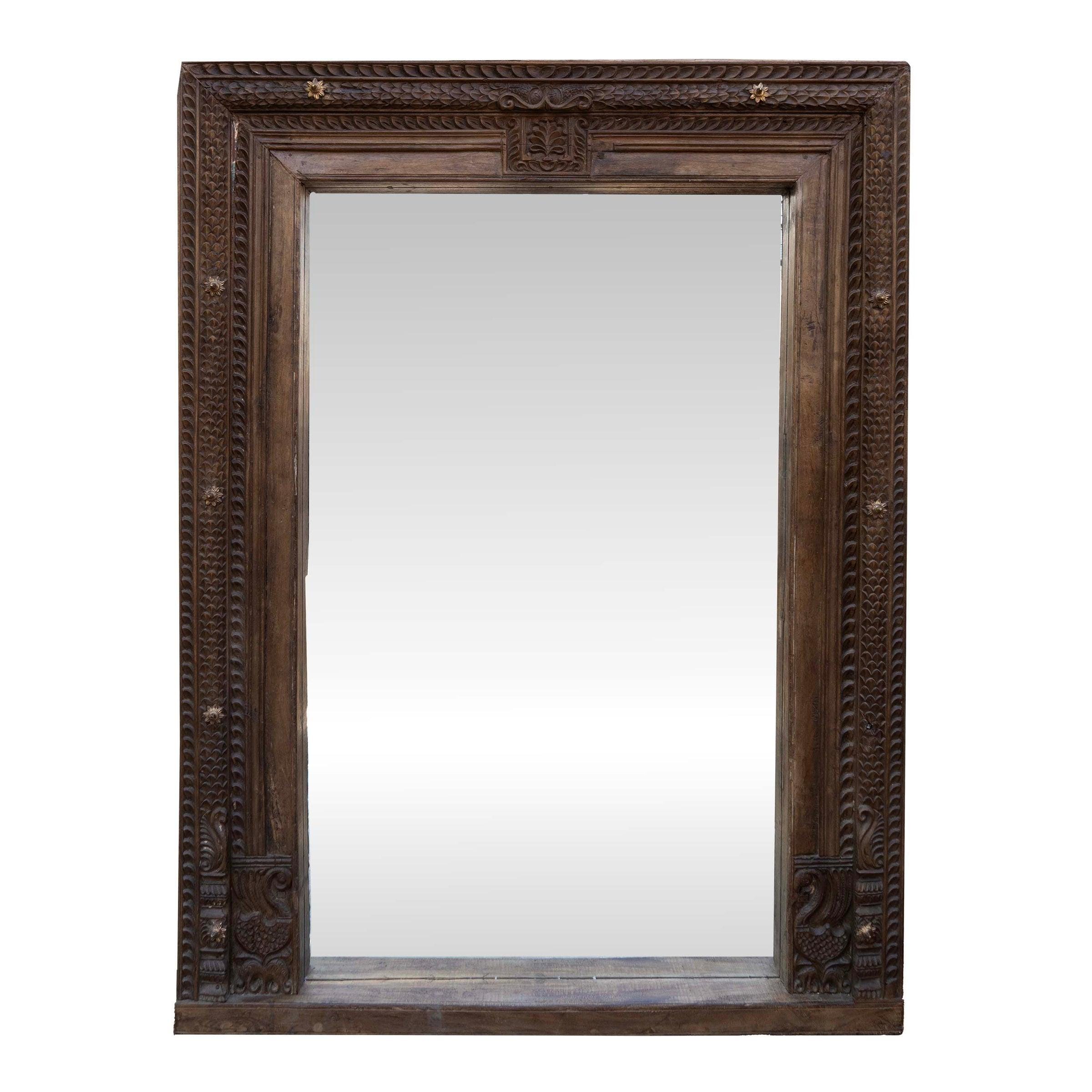 Grande specchio in legno di teak, specchio da parete in legno intag...