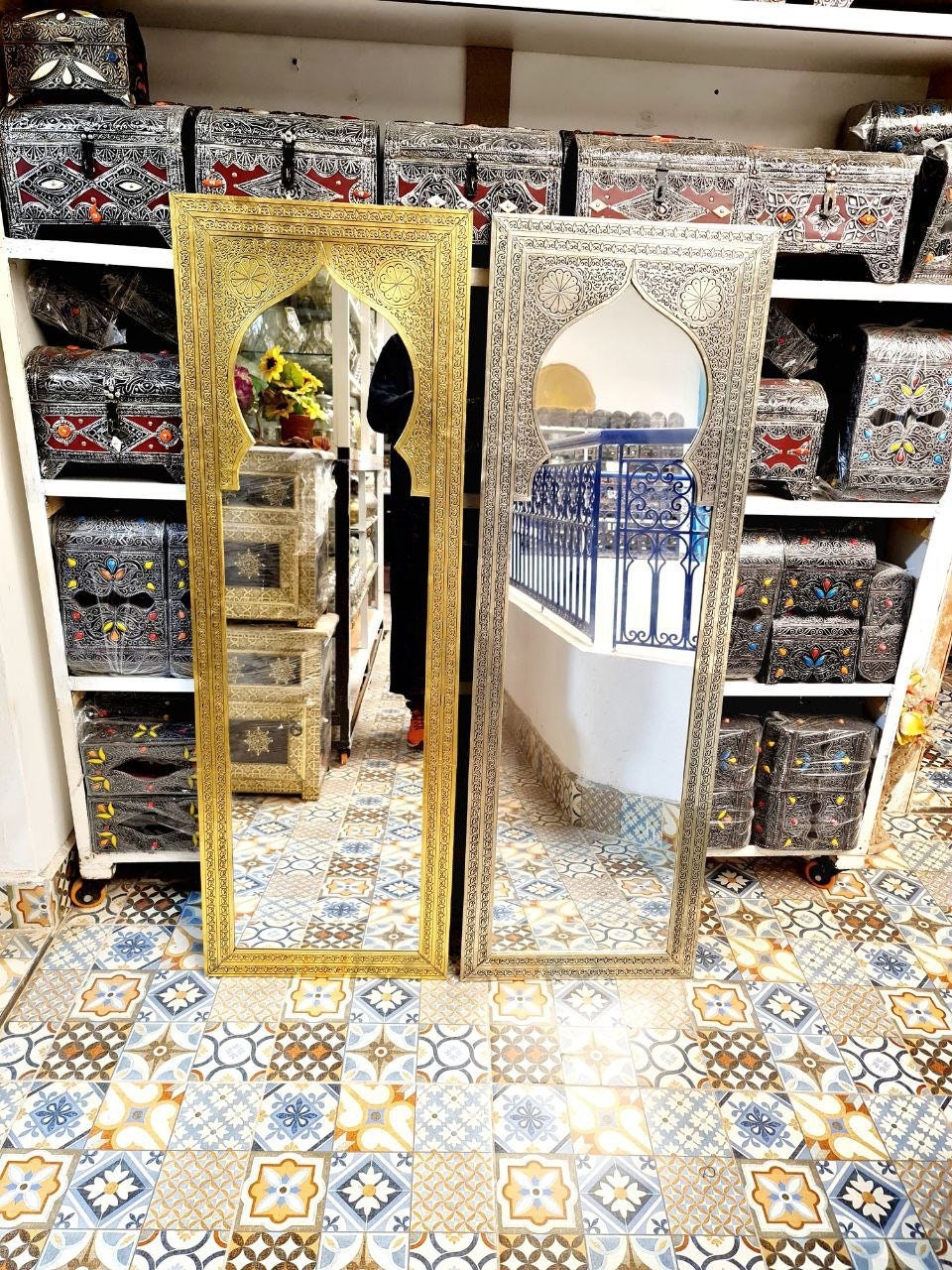 Specchio marocchino in ottone, specchio dorato, specchio ad arco, s...