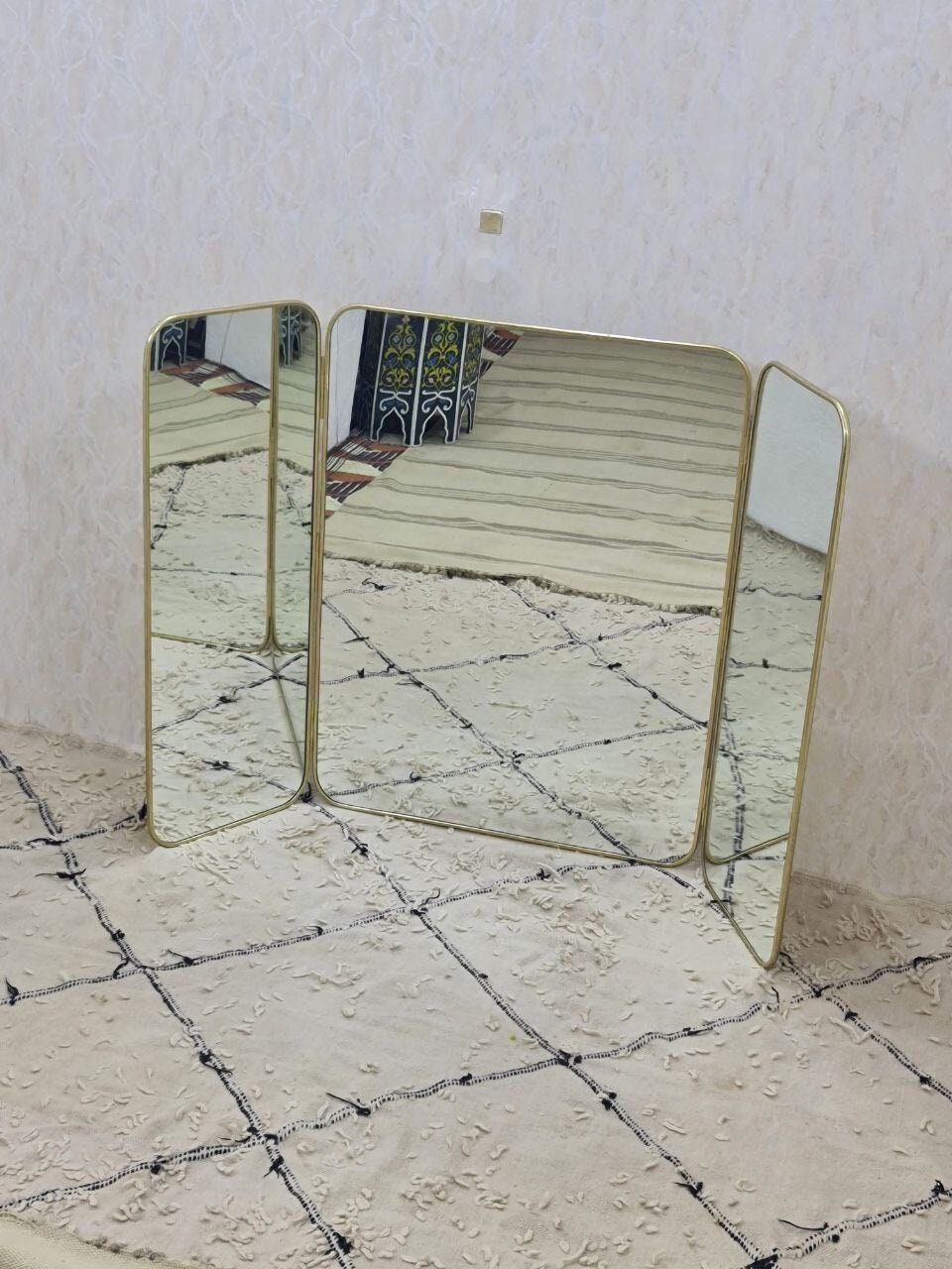 Specchio trittico dorato, specchio da barbiere, specchio triplo, sp...