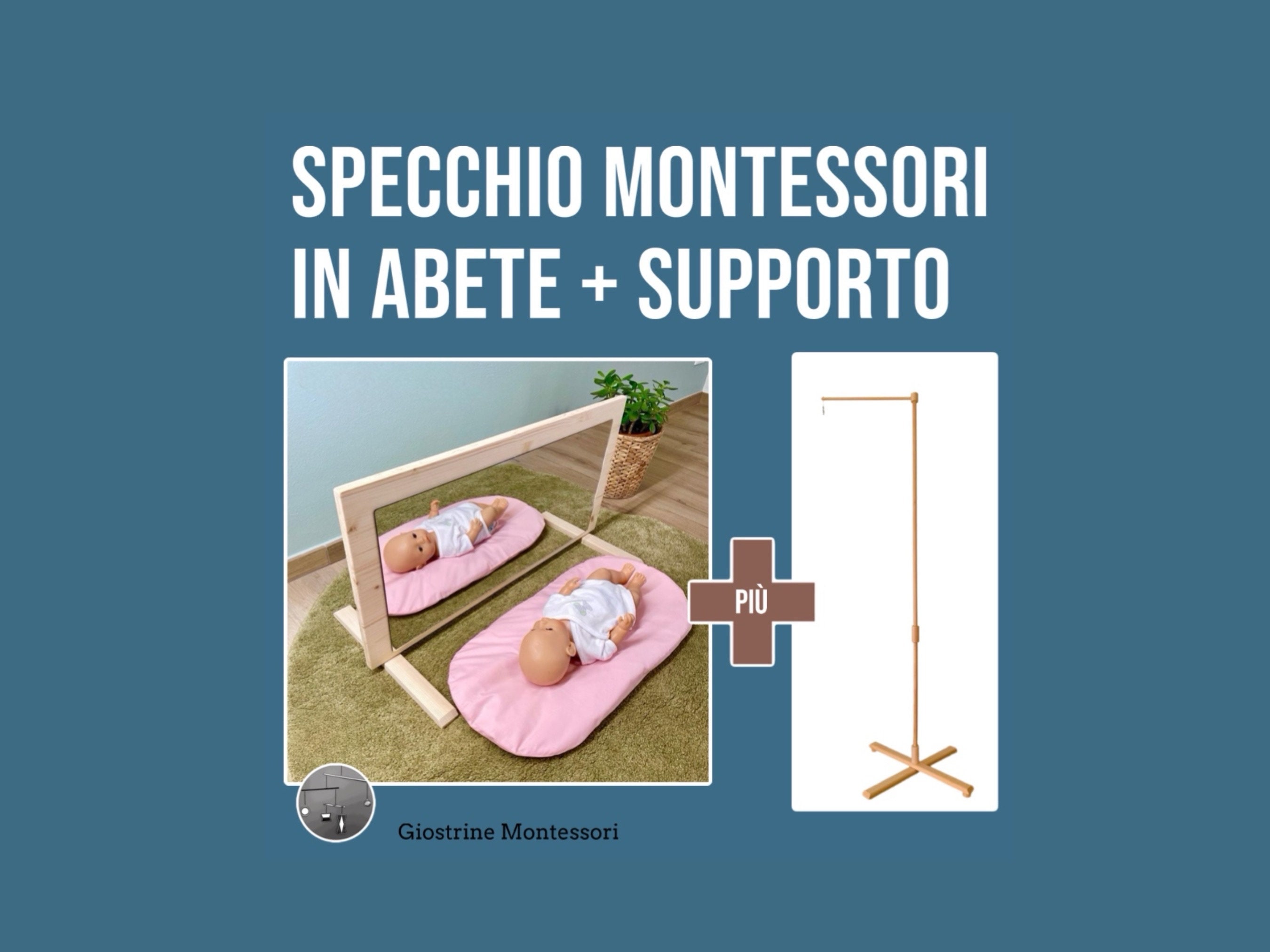 Specchio Montessori ABETE + Supporto in legno di faggio regolabile ...