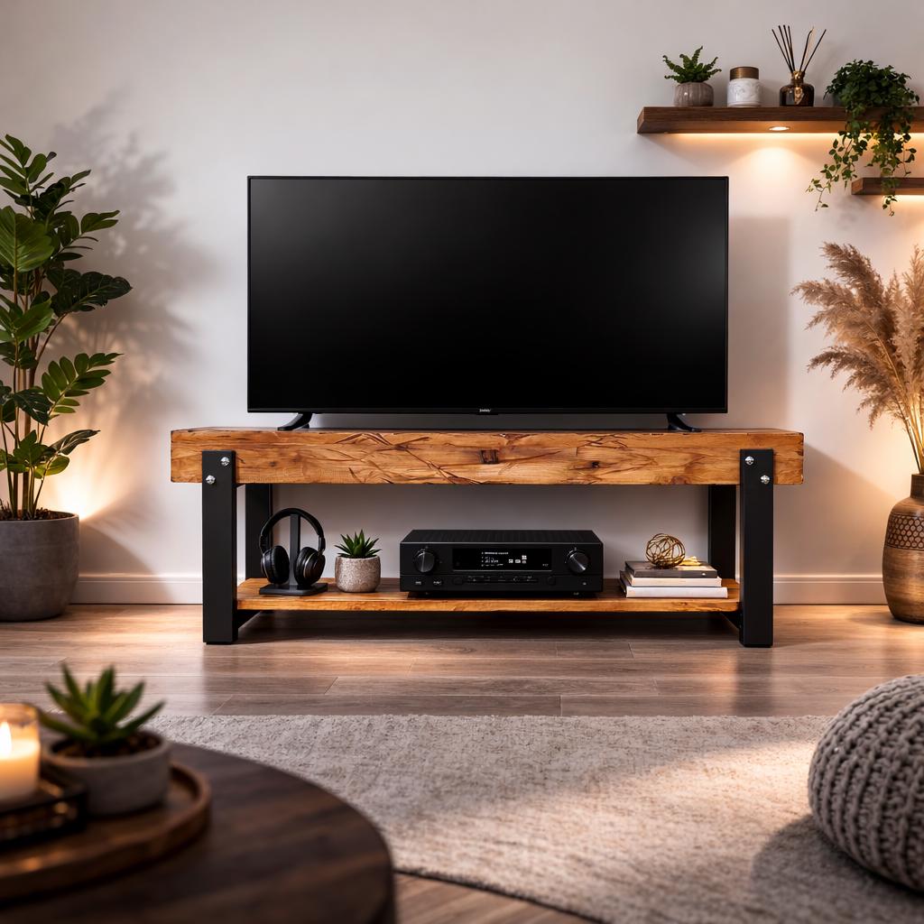 Progettato per spazi abitativi tranquilli e case vere, questo mobile porta TV rustico fatto a mano &...