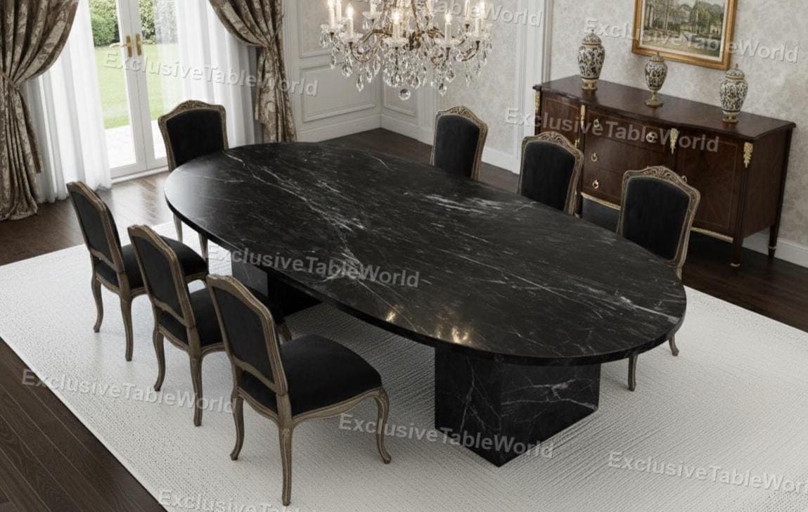 Tavolo da pranzo ovale di lusso in marmo nero Tavolo con piedistall...