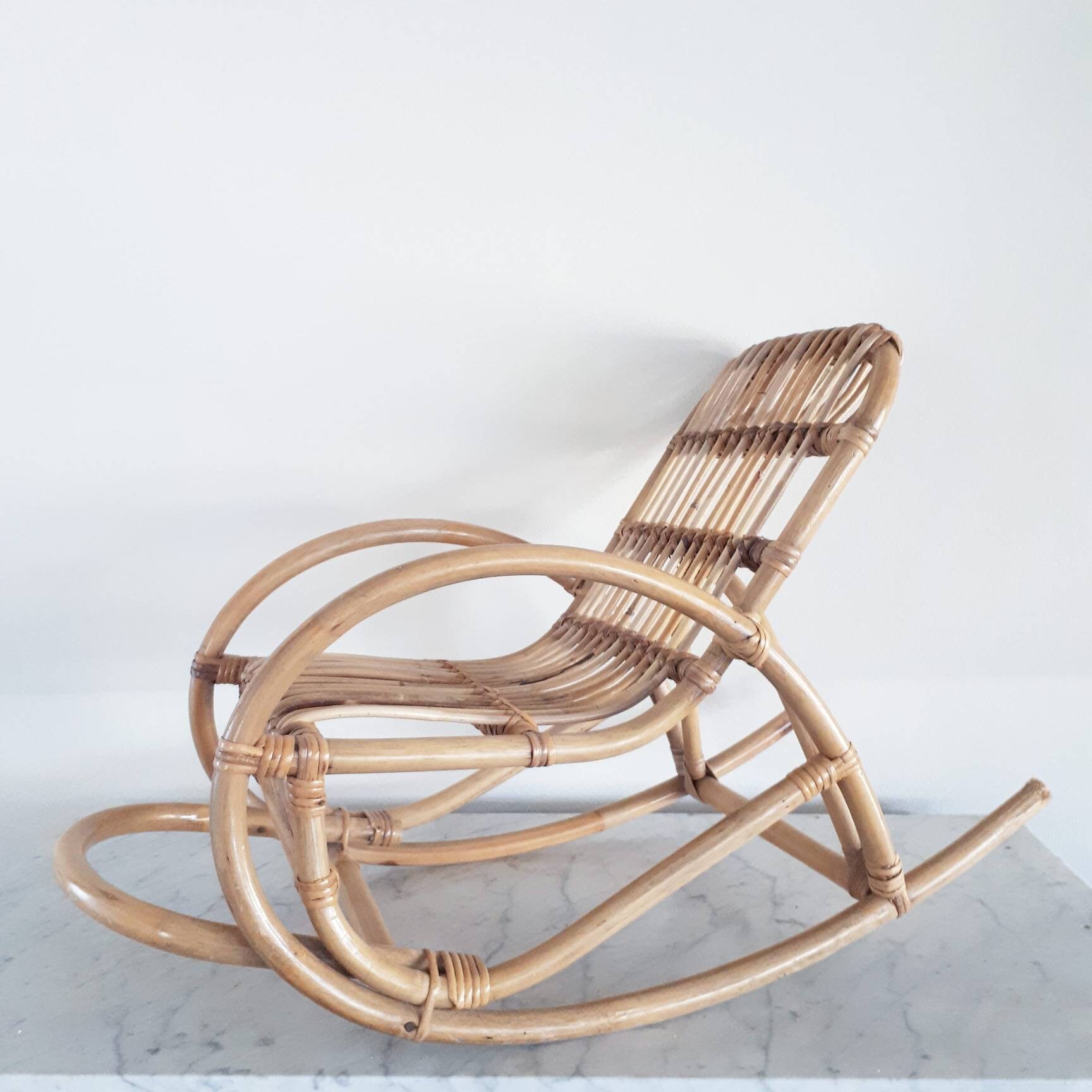 Sedia a dondolo in rattan per bambini Sedia vintage per bambini Sed...