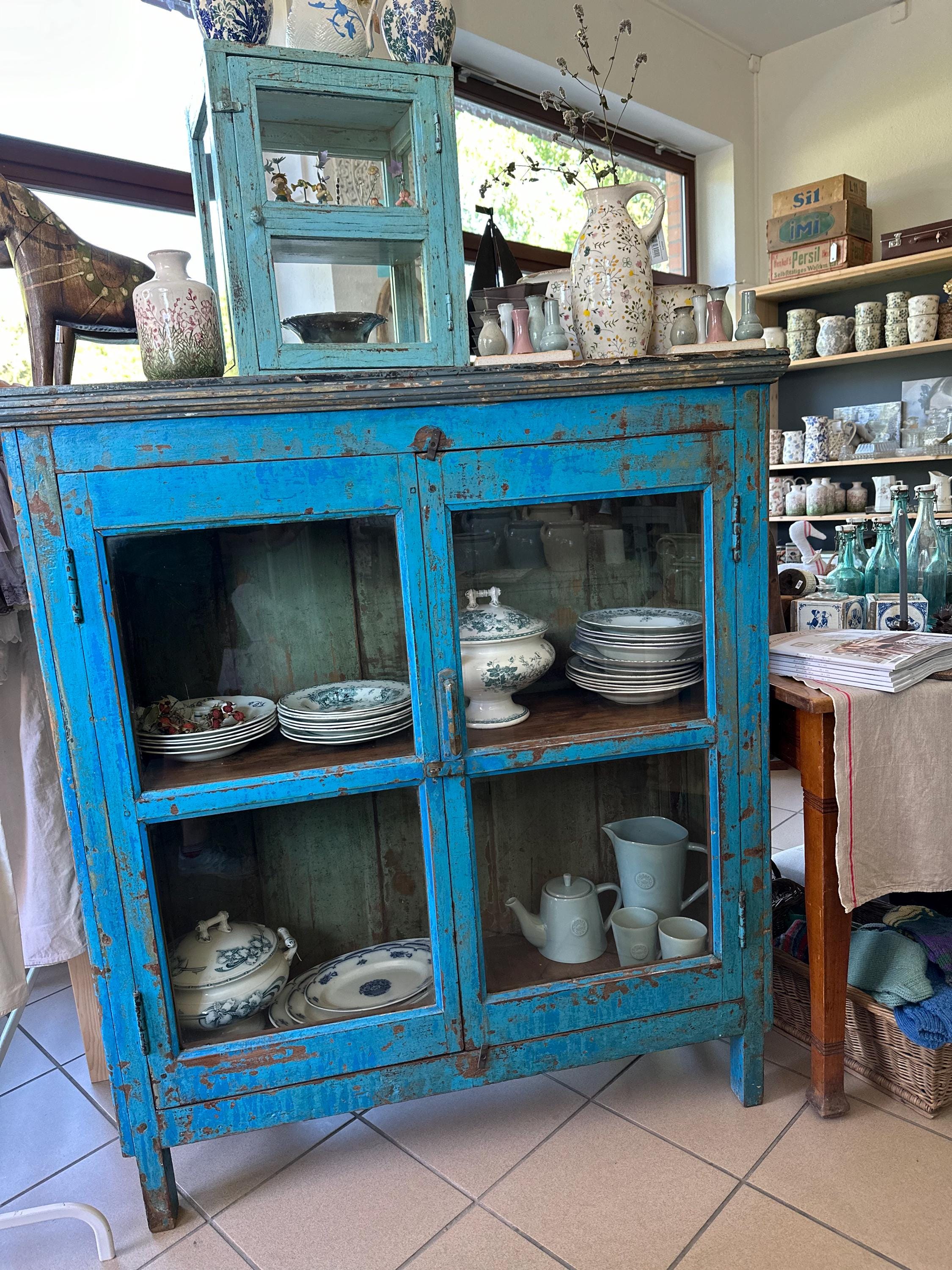 L'esclusiva vetrina di Greta: una bellissima vetrina blu con ante in vetro, per riporre i tuoi ogget...