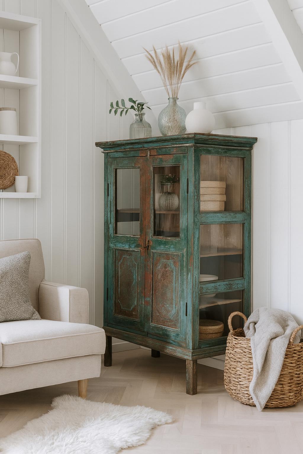 La vetrina da sogno di Greta: un'incredibile patina verde-turchese con ante in vetro e la profondit&...