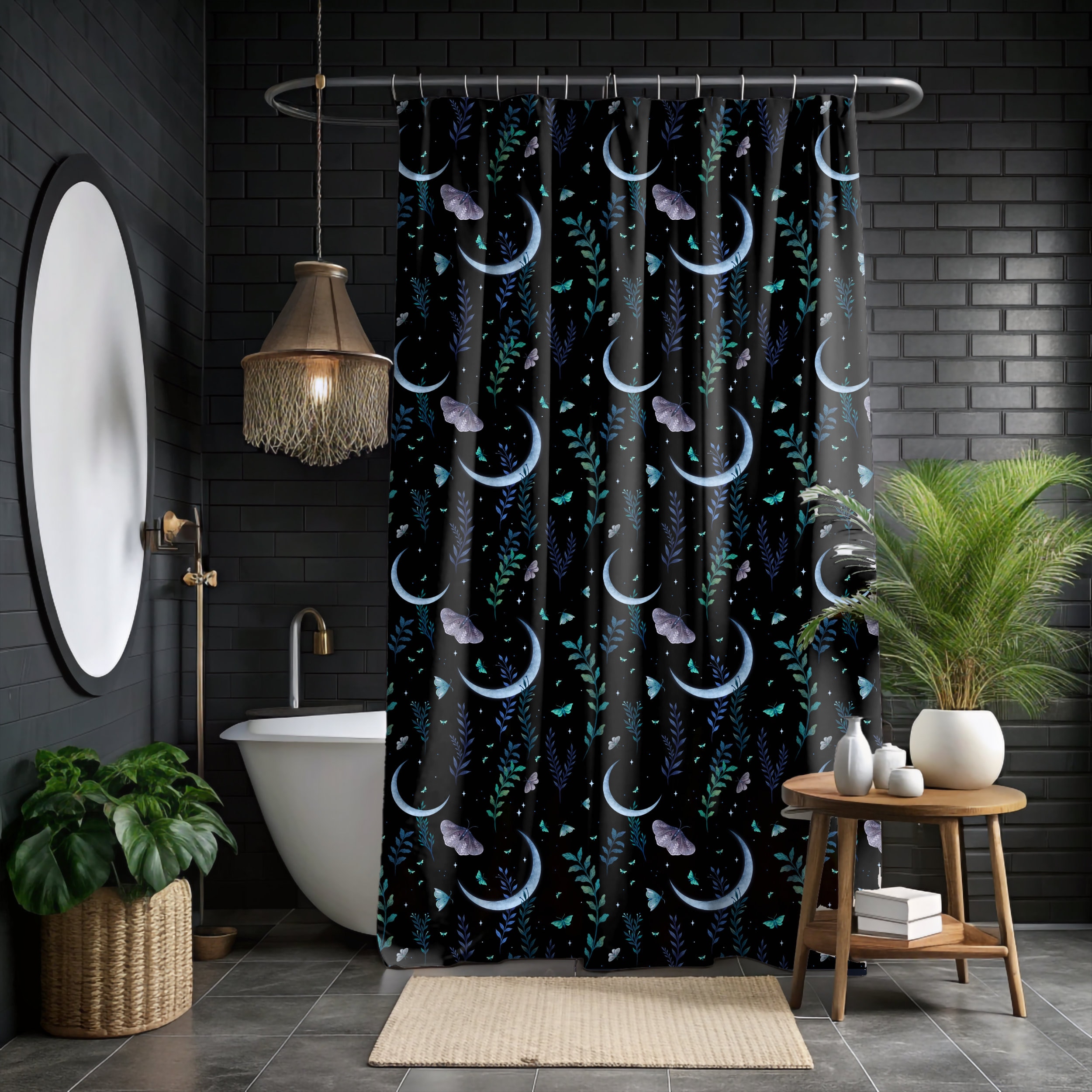 "MAGICAL MOON & MOTH Tende da doccia in tessuto, Tende da bagno con falena mistica, Arredam...