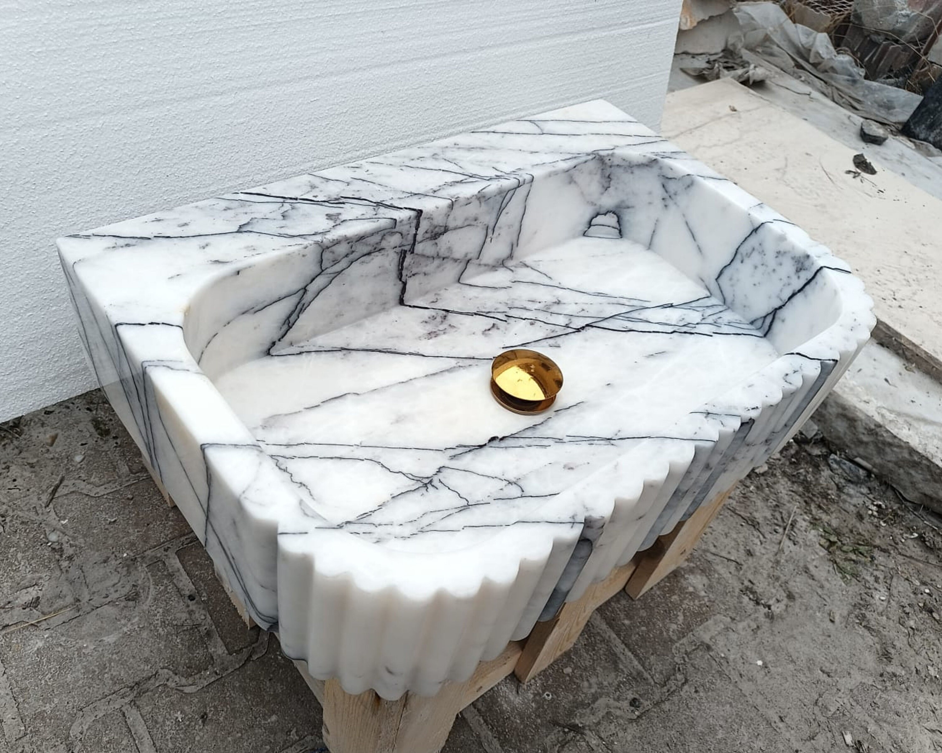 "Lavandino in marmo lilla, lavabo a parete, lavabo angolare scanalato, lavabo per bagno Lavello...