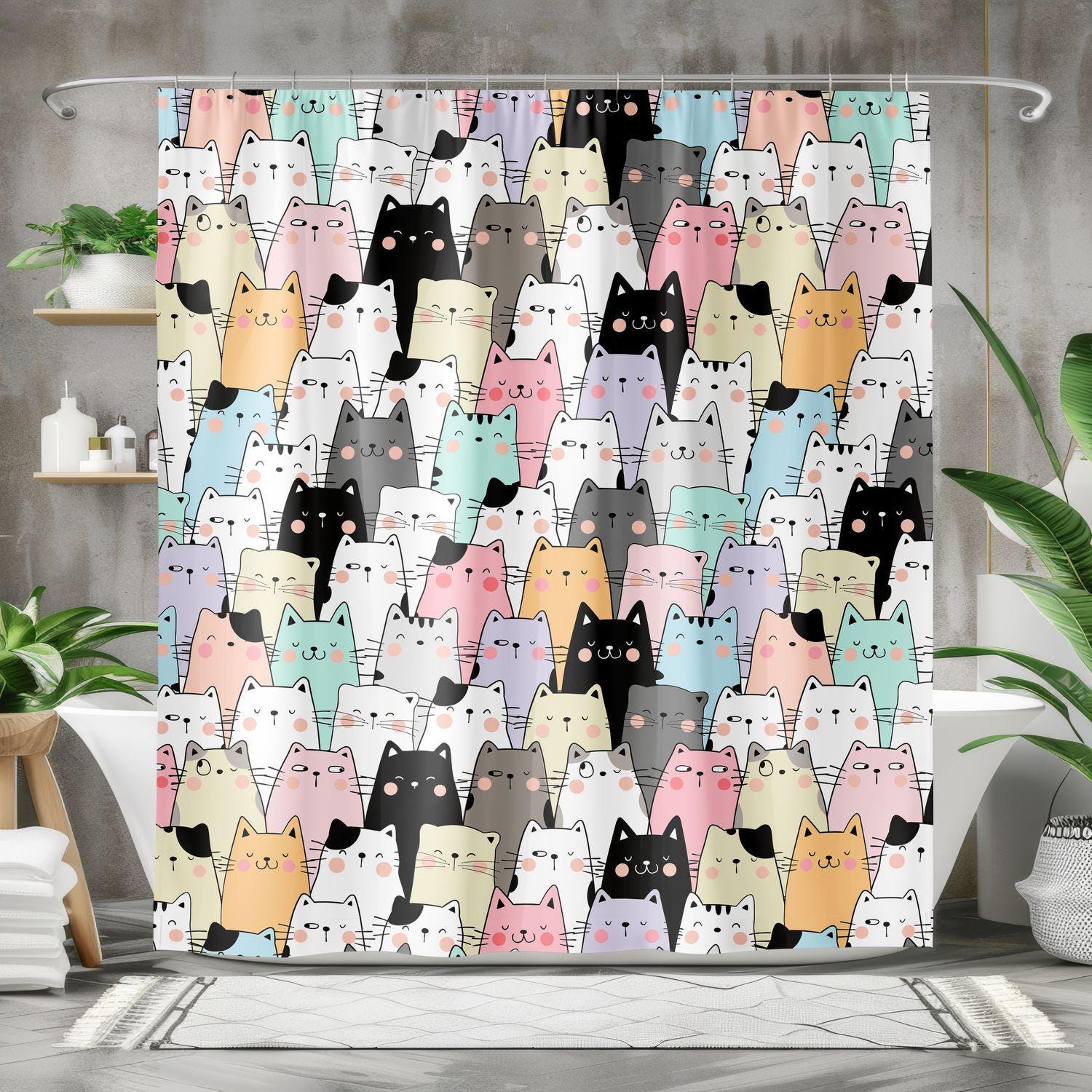 Divertenti gatti con tenda da doccia, tenda da bagno colorata in st...