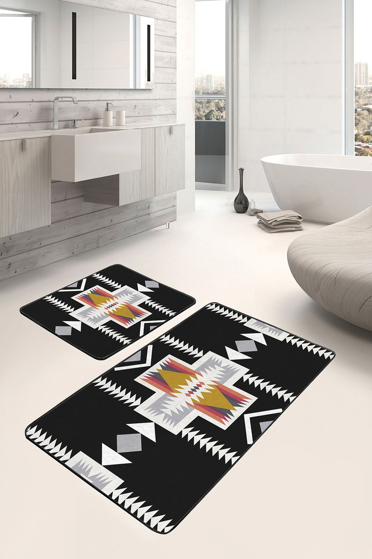 Set di 2 tappetini da bagno con stampa digitale KonakArt Il tappetino da bagno doppio con stampa dig...