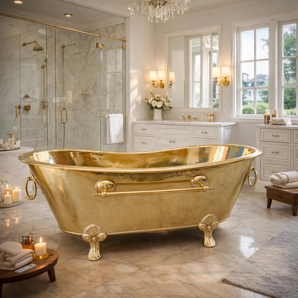 "Scopri l'epitome del lusso con la nostra vasca da bagno in ottone fatta a mano, un pezzo eccez...