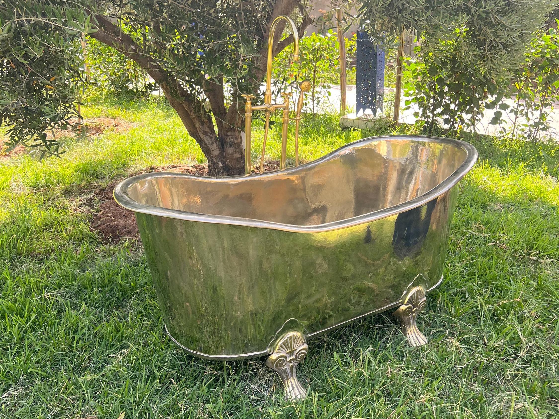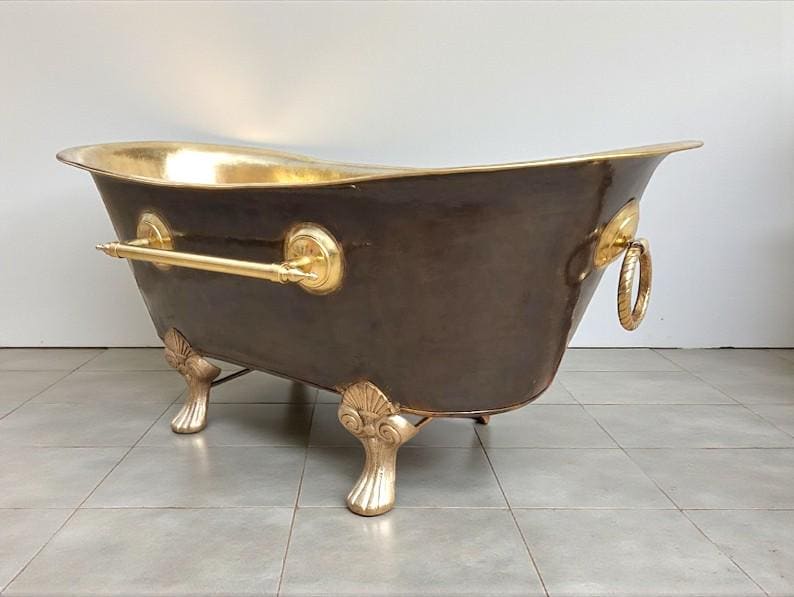 Vasca da bagno in ottone anticato, vasca da bagno in ottone con pie...