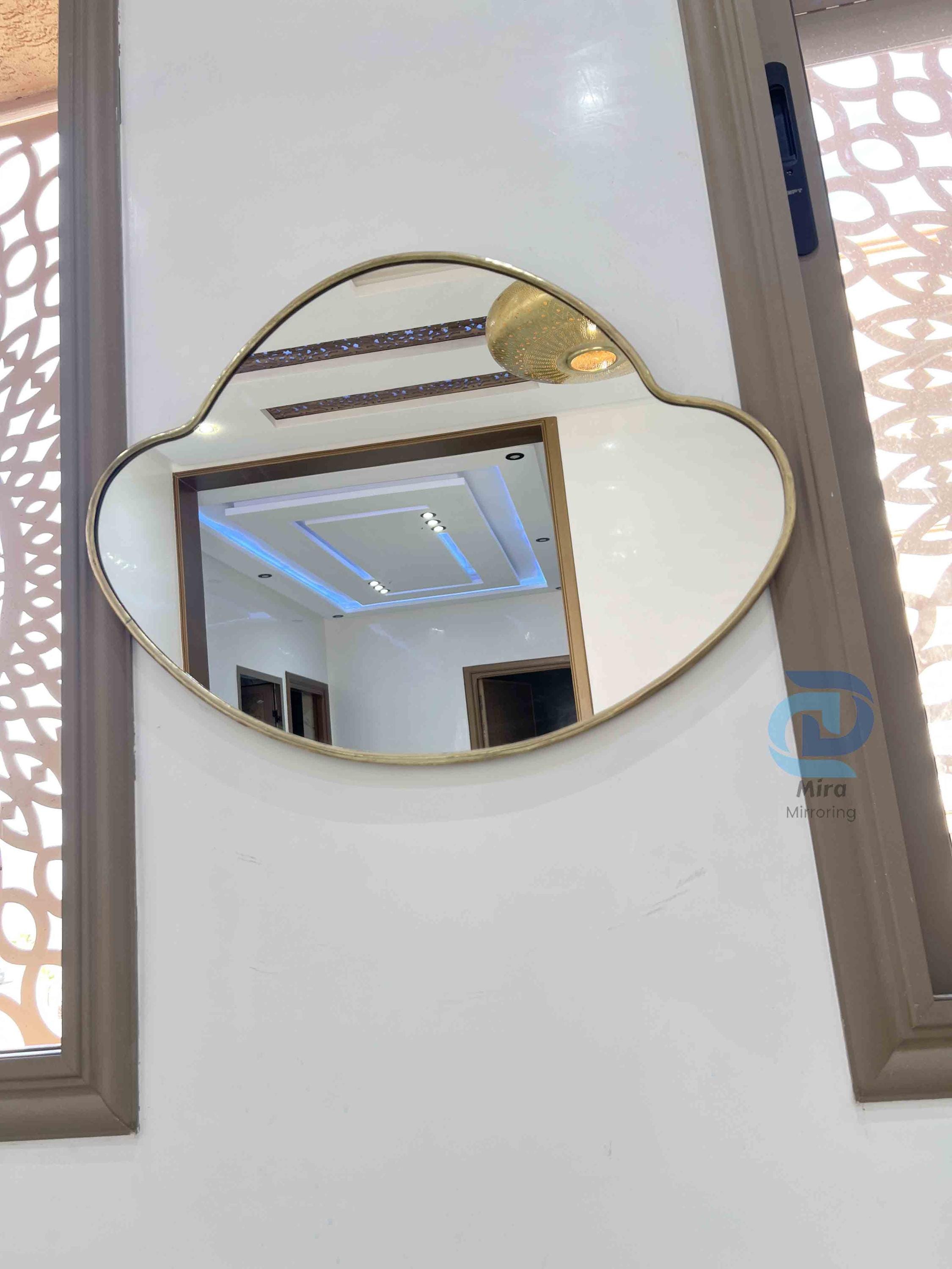 Specchio da parete curvo in ottone anticato: design irregolare a fo...