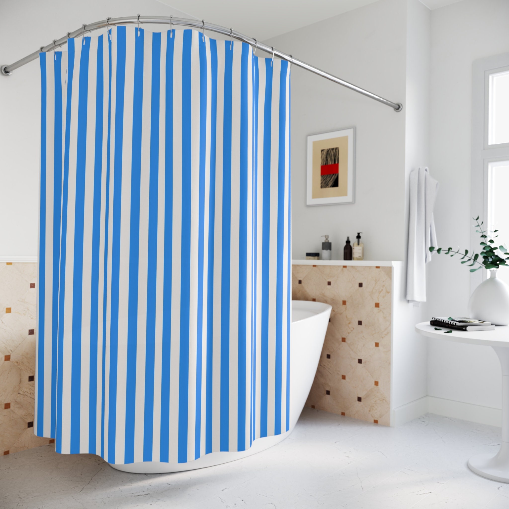 Tenda da doccia a righe blu e bianche, tenda da bagno, decorazione ...