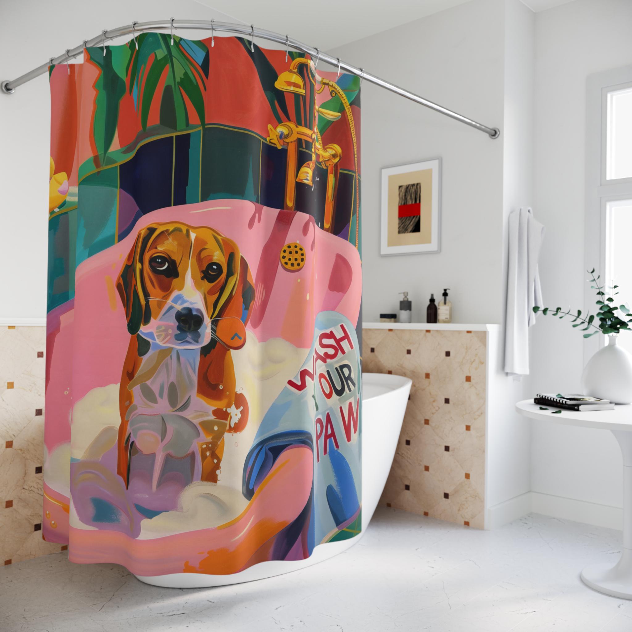 "La nostra tenda da doccia massimalista boho dog unisce lo stile del design boho chic con un au...