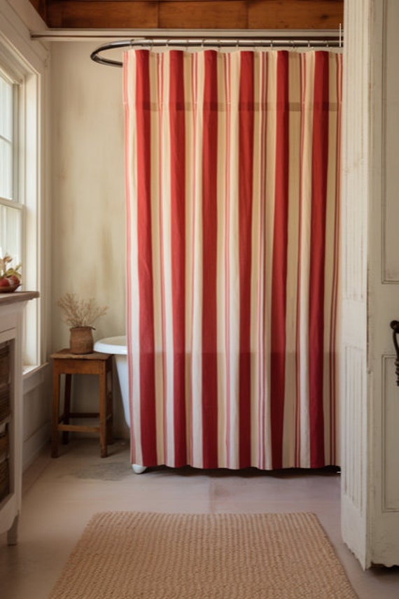 Tenda da doccia Cottage Decor, tenda da bagno a righe rosse e crema...