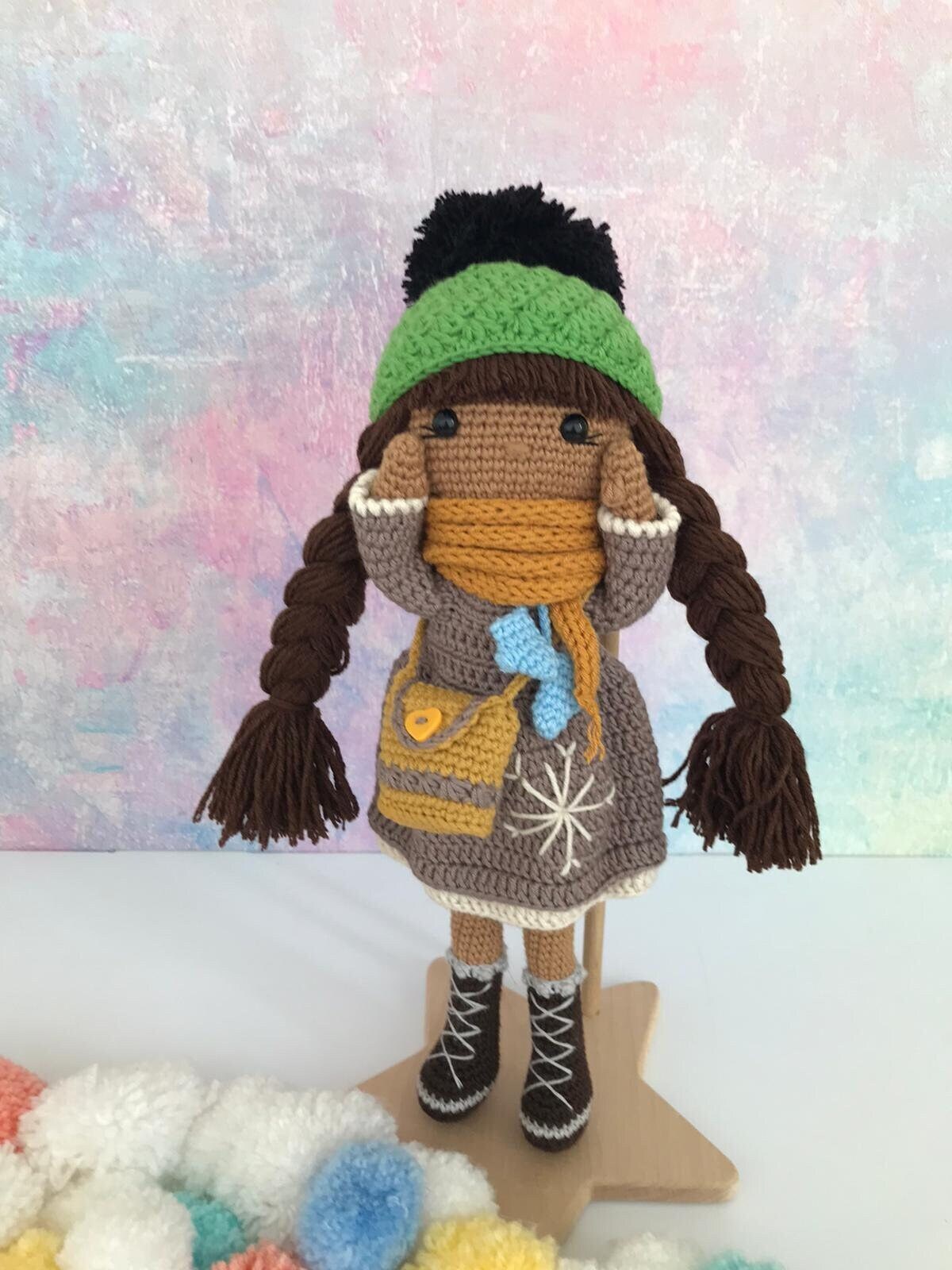 Bambola all'uncinetto dalla pelle scura, bambola fatta a mano, bamb...