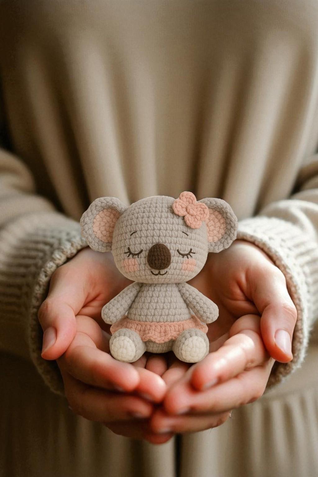 Bambola Koala all'uncinetto - Koala grigio amigurumi con gonna rosa...