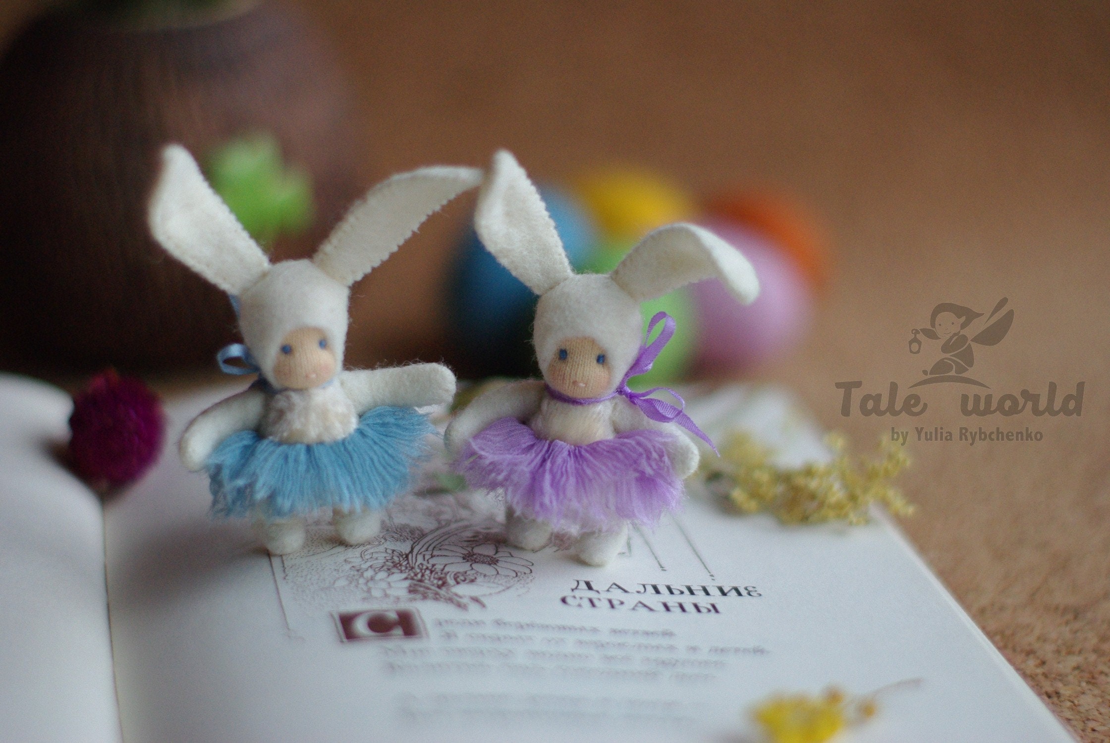 Peluche coniglietto in feltro con gonna viola acquamarina: ooak art...
