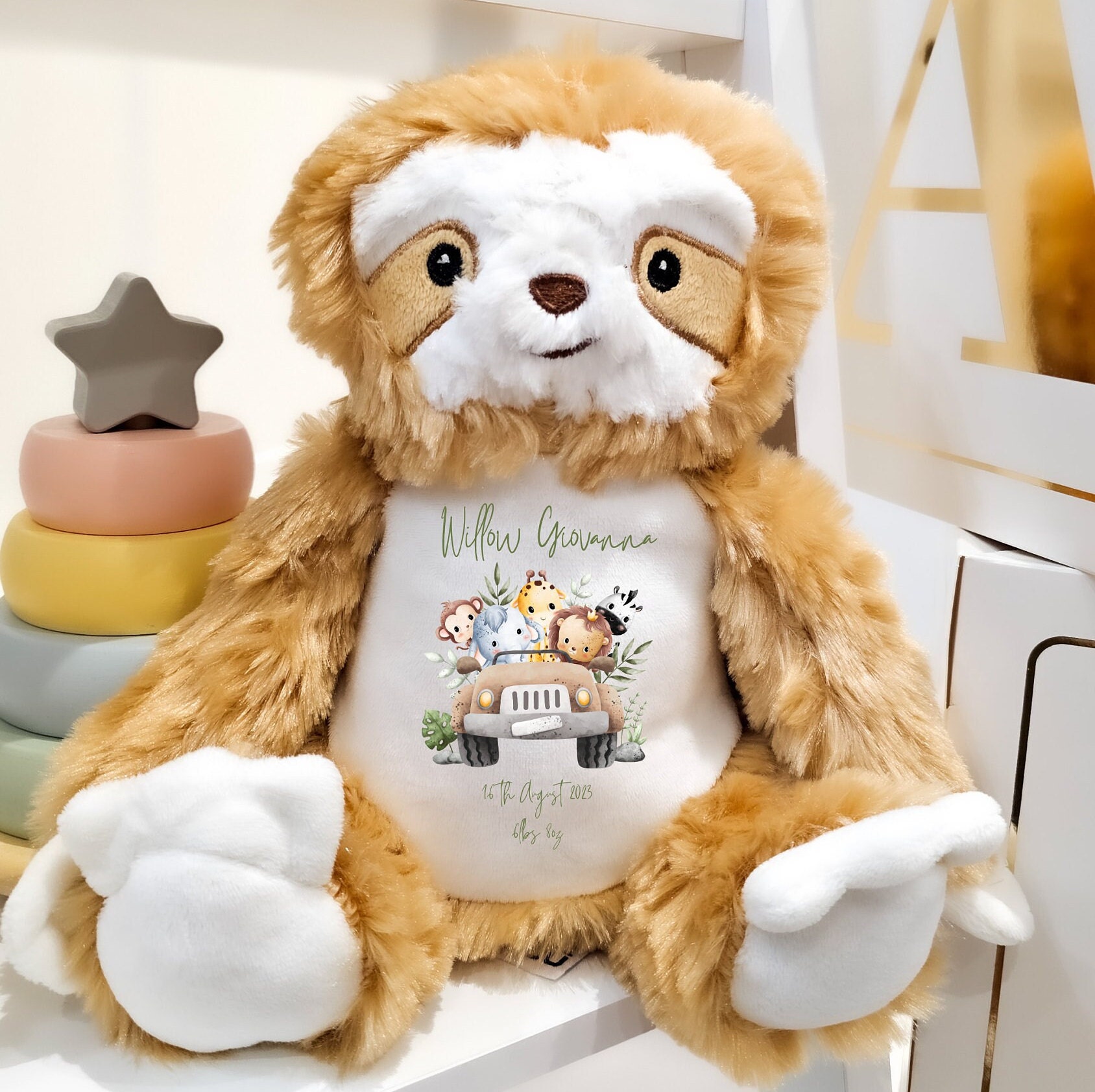 Cerchi il regalo perfetto per un neonato? Il nostro peluche Safari Car personalizzato è il re...