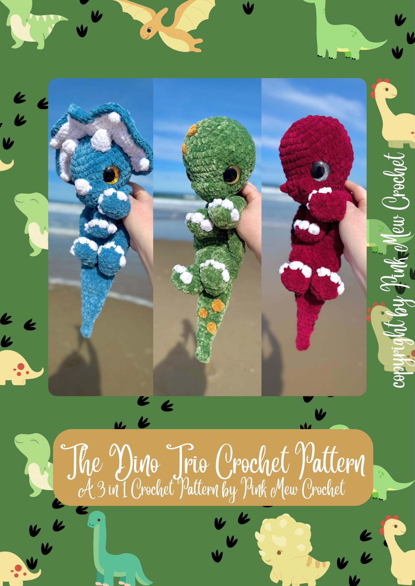 Schema all'uncinetto per il Dino Trio Snuggler, dinosauro, peluche,...