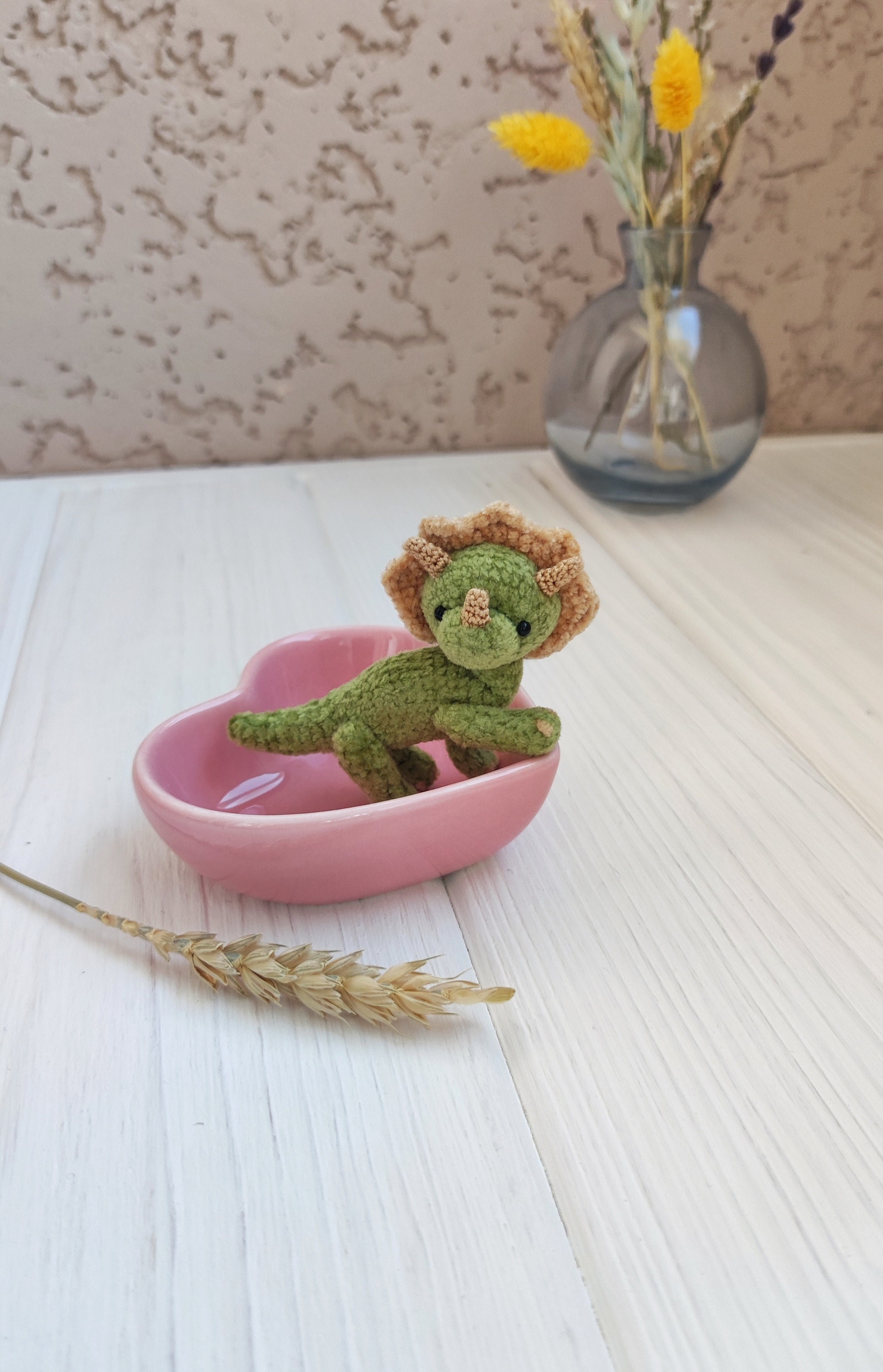 Statuetta di peluche di triceratopo in miniatura da collezione. Sim...