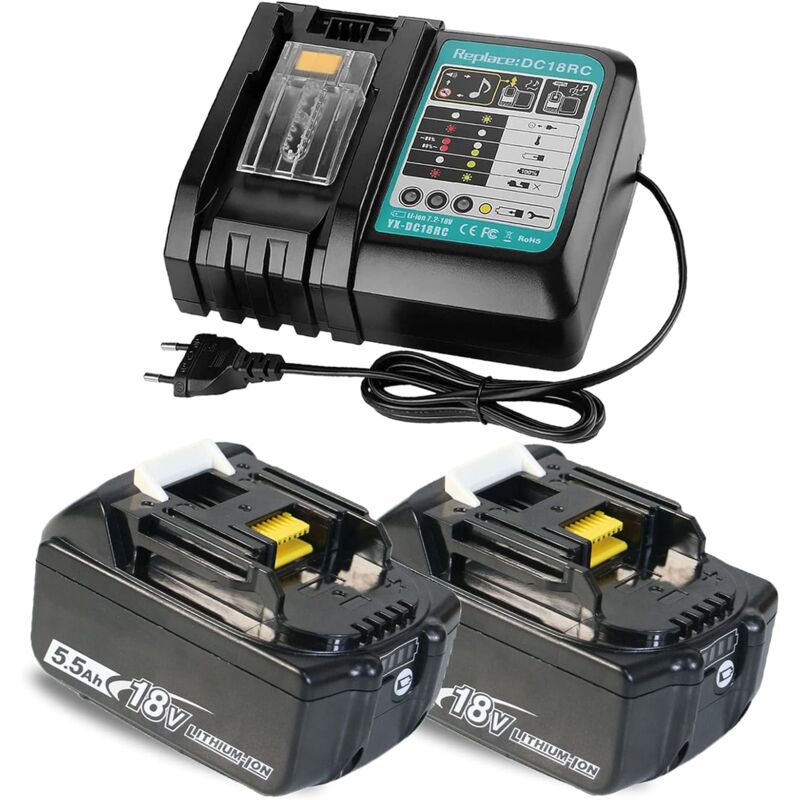 Teetok - 18v 5.5ah Batteria , Con Schermo Led Bl1850 Bl1840 Bl1860 ...