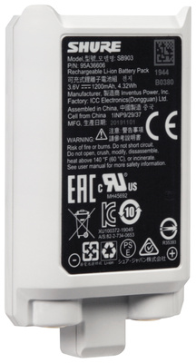 Shure SB903, Batteria agli ioni di litio per trasmettitore Shure SLXD3,6 V/1200 mAh, 3,6 V/1200 mAh,...