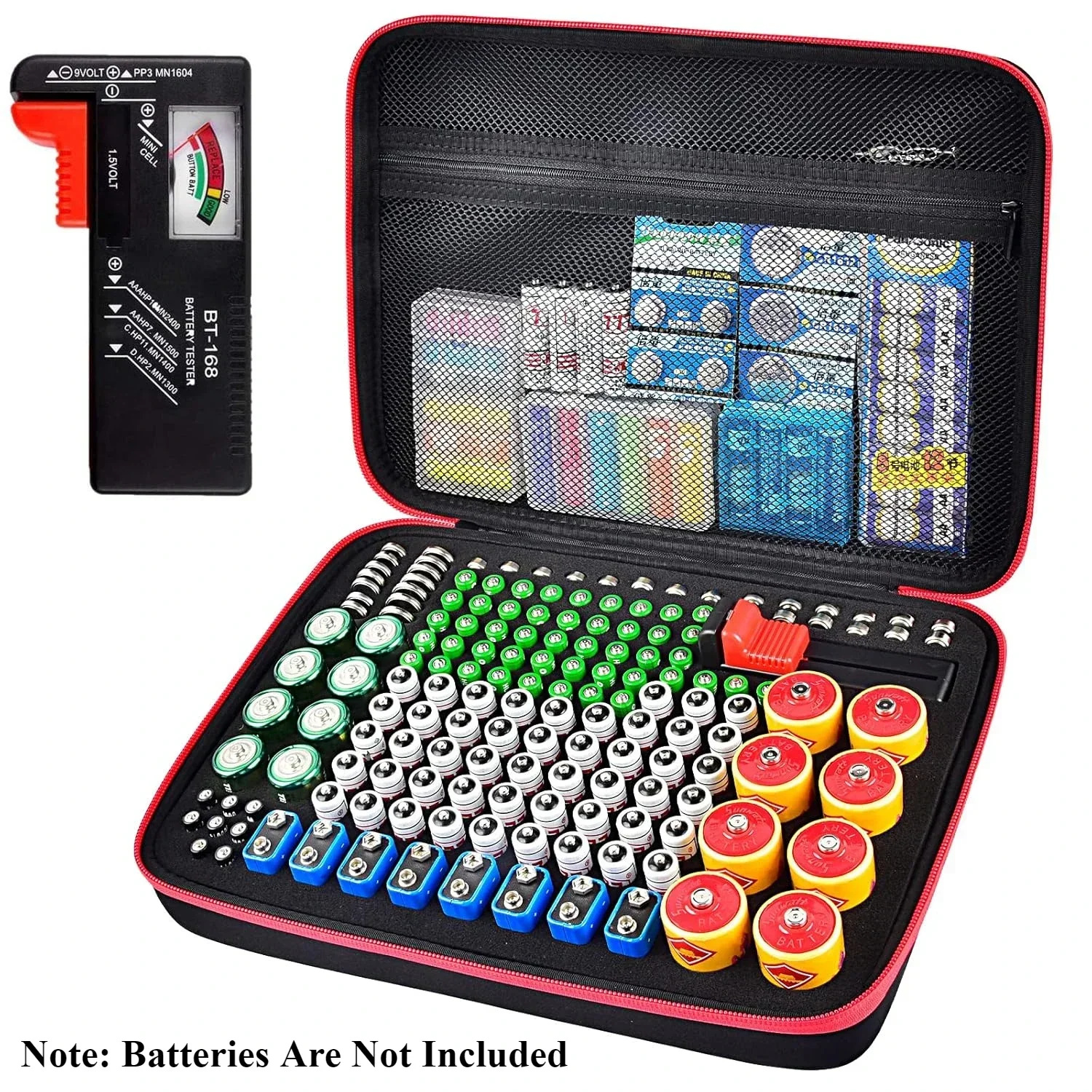 Borse portaoggetti per organizer per batterie con tester Checker BT-168. Contiene 225 batterie AA AA...