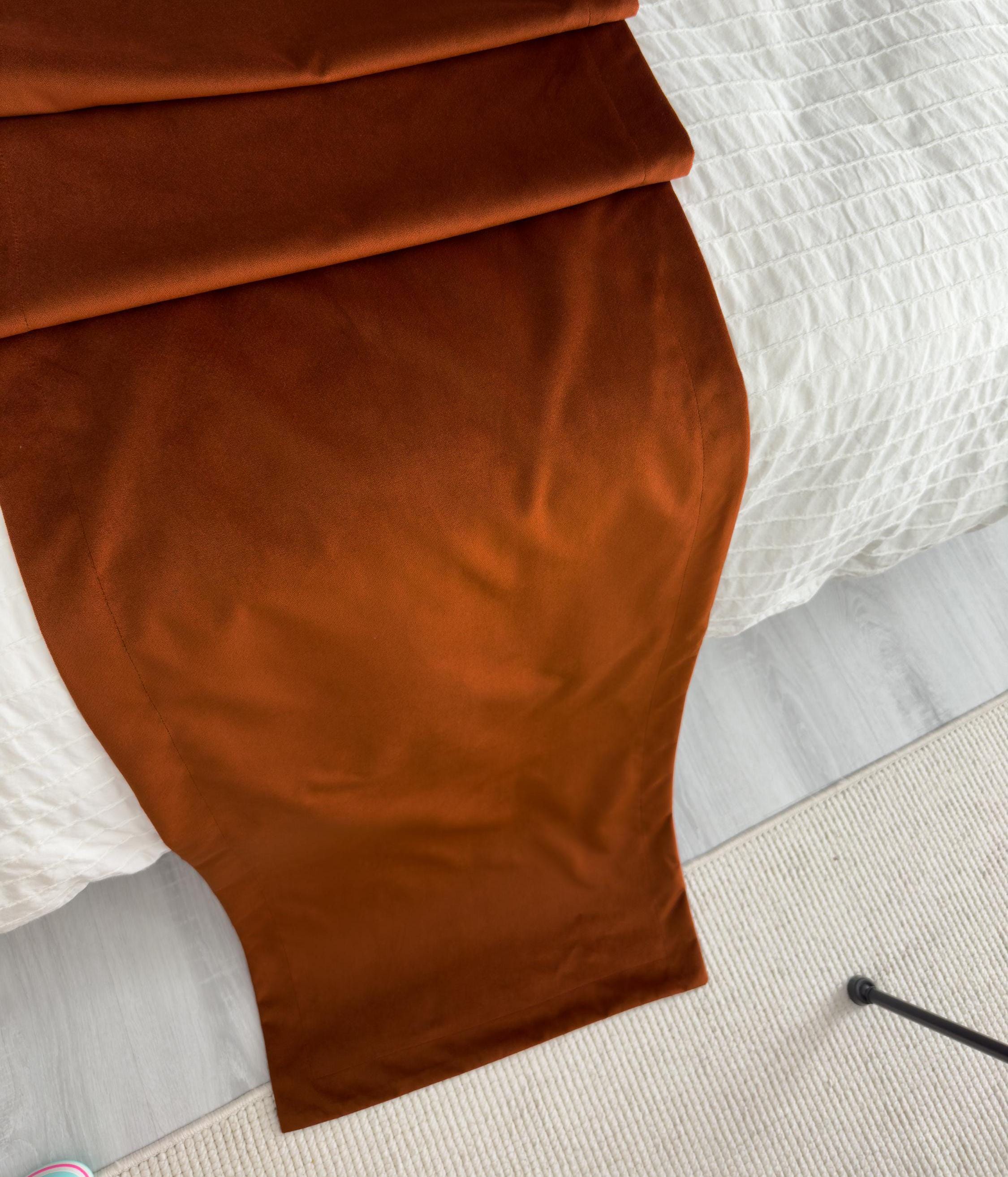 Runner da letto in velluto terracotta per arredamento camera da letto, sciarpa da letto in velluto b...