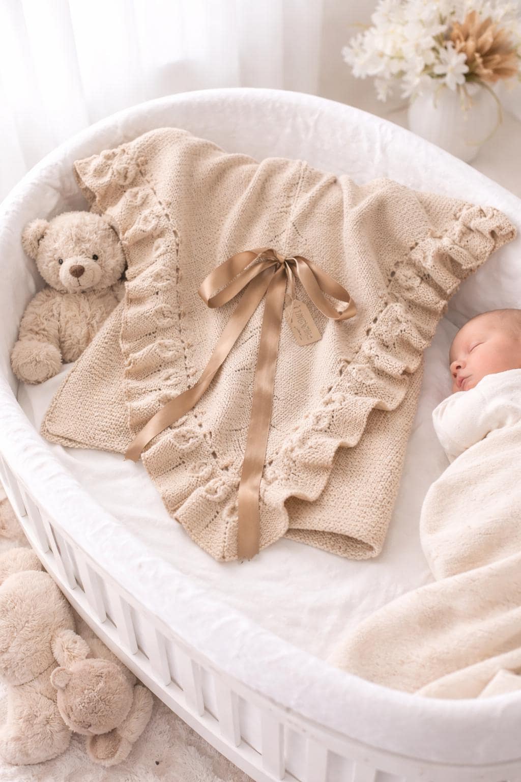 Copertina per neonato lavorata a mano a maglia con volant a forma d...