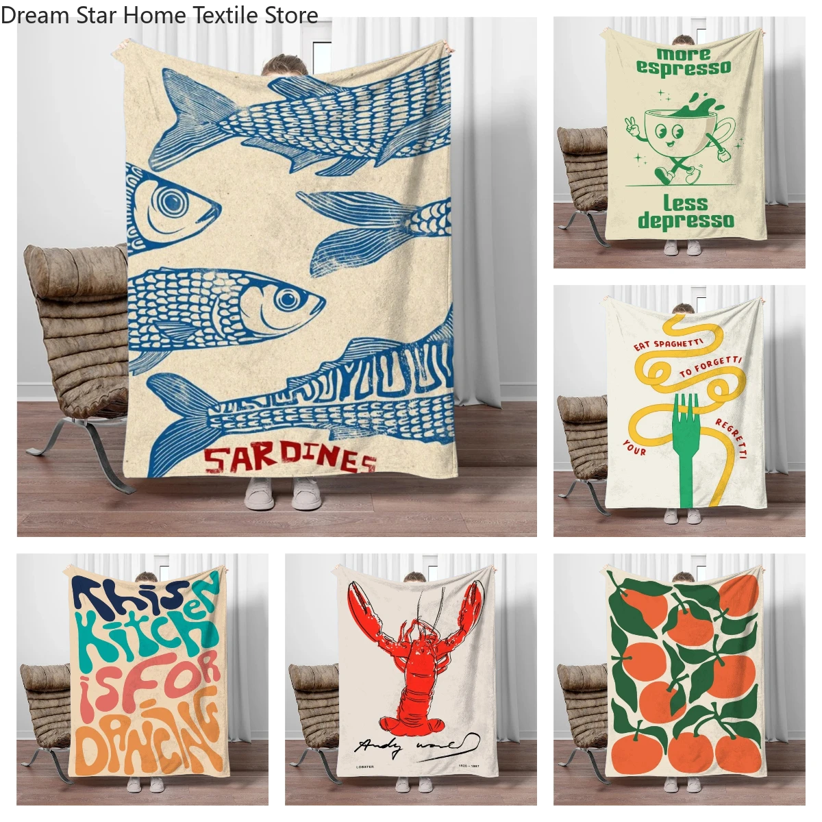 Coperta Retrò con Disegni di Cibo e Cartoni Animati, Morbida...
