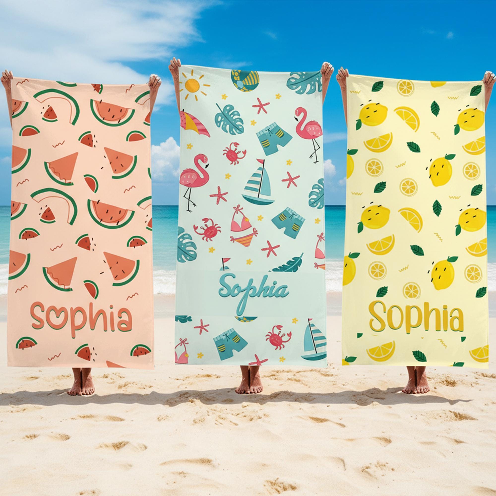 Asciugamano da spiaggia personalizzato con stampa di frutta, asciugamano da spiaggia personalizzato ...