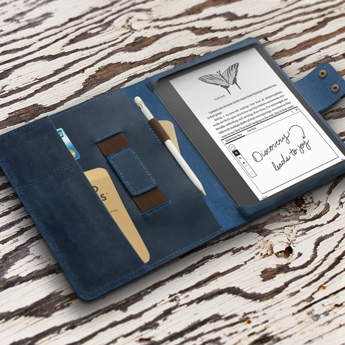 Vi presentiamo la nostra custodia in pelle realizzata a mano per l'e-book Kindle Scribe, meticolosam...
