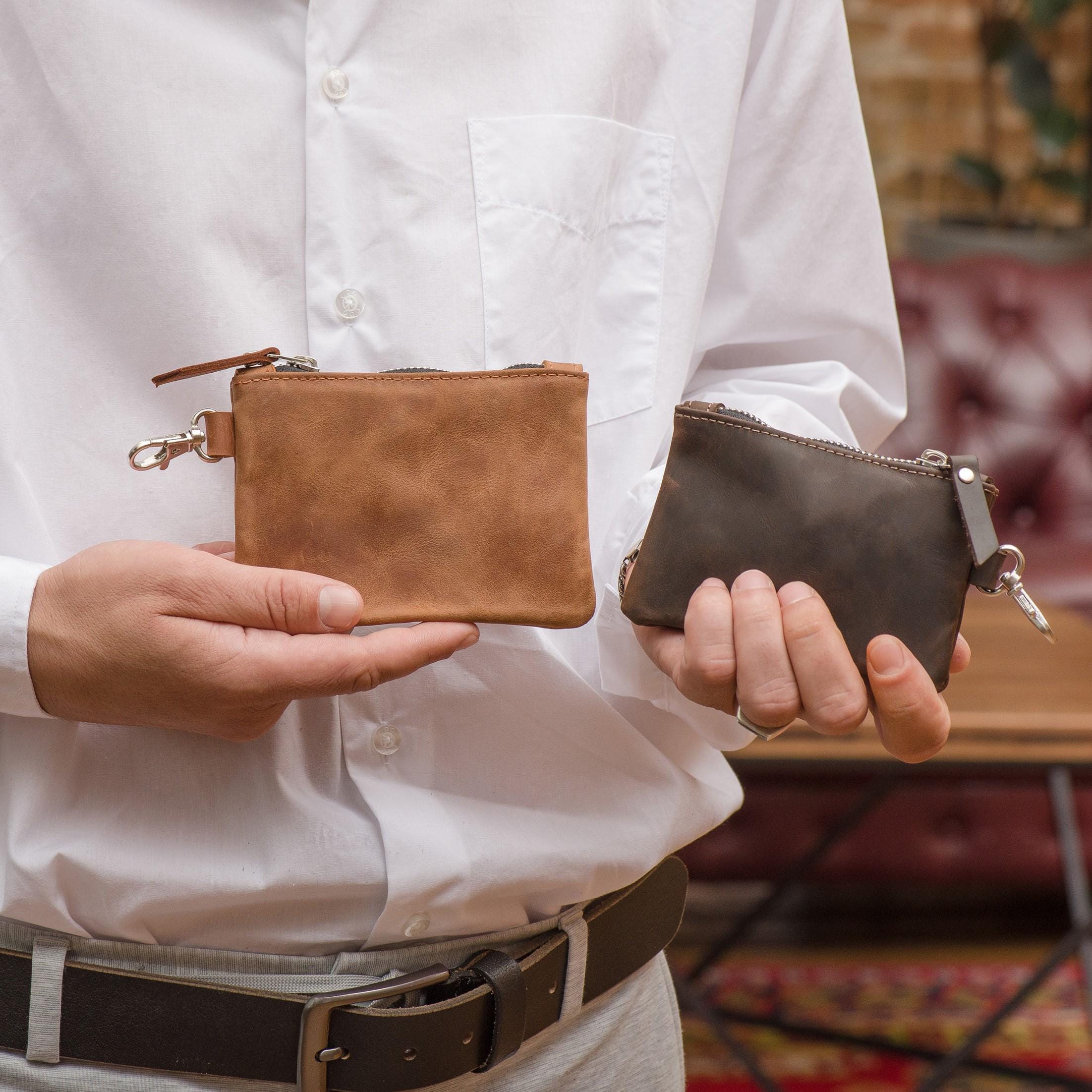 Portachiavi in pelle, piccolo portachiavi con cerniera personalizza...