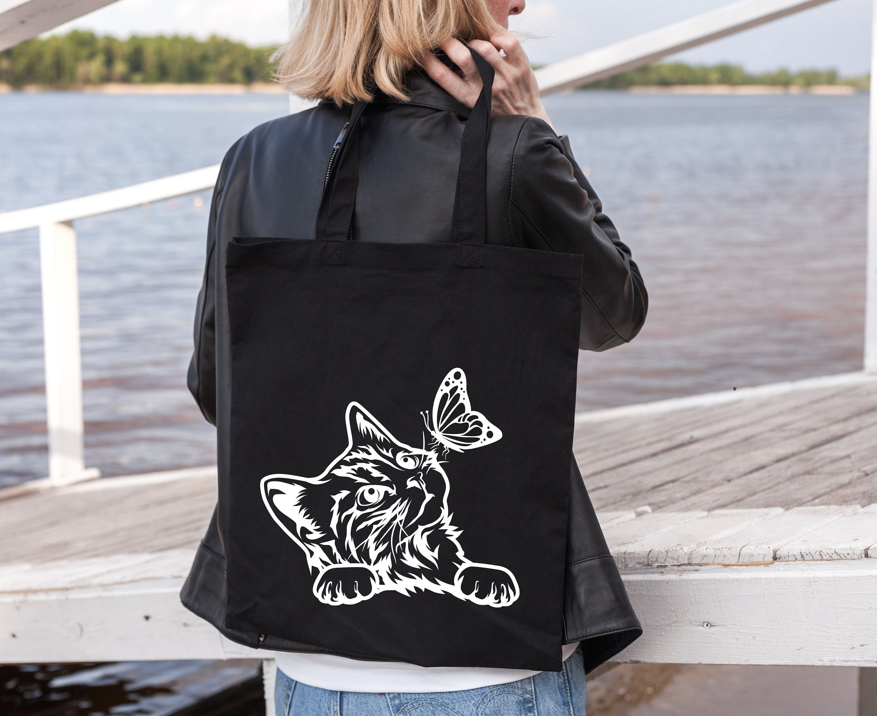 Cute Cat Butterfly Tote Bag, Wild Flower Cute Cat Bags, Regali per ...