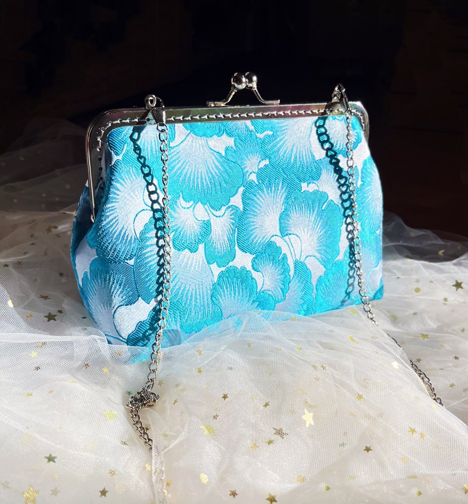 Blue blue clutch, shoulder bag, women's bag, white blue bag, handma...