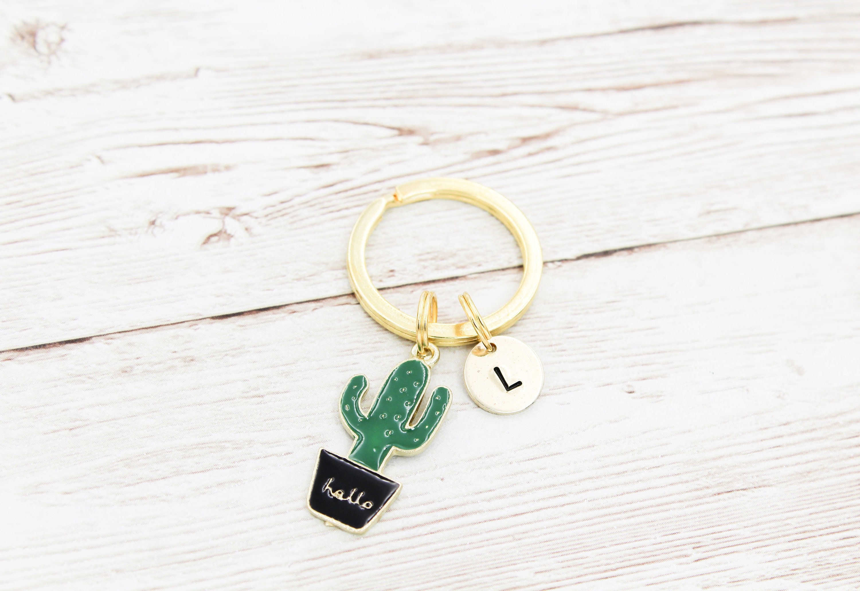 Portachiavi cactus personalizzato, portachiavi cactus iniziale pers...