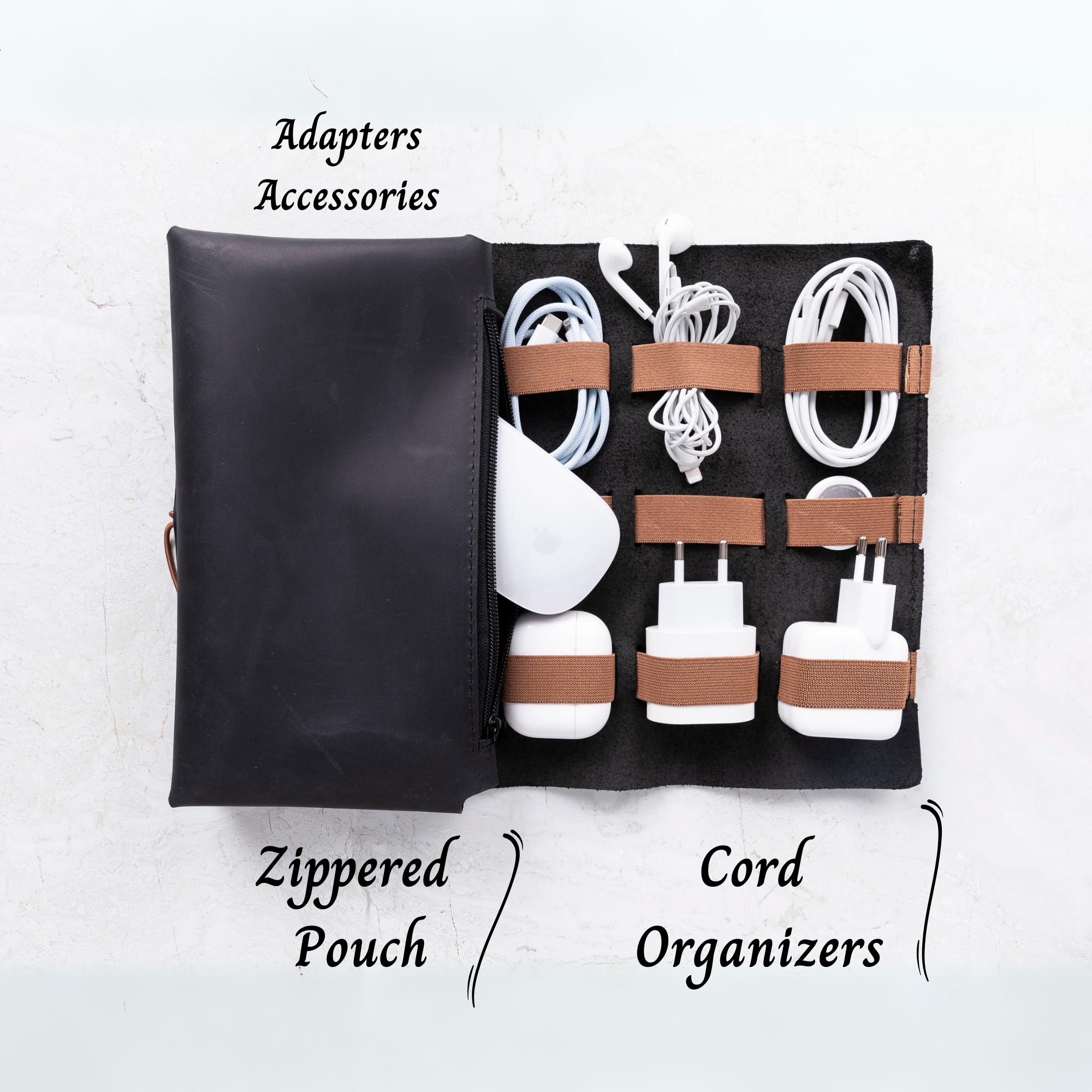 Organizzatore per cavi in pelle personalizzato - Custodia da viaggio tecnologica fatta a mano Mantie...