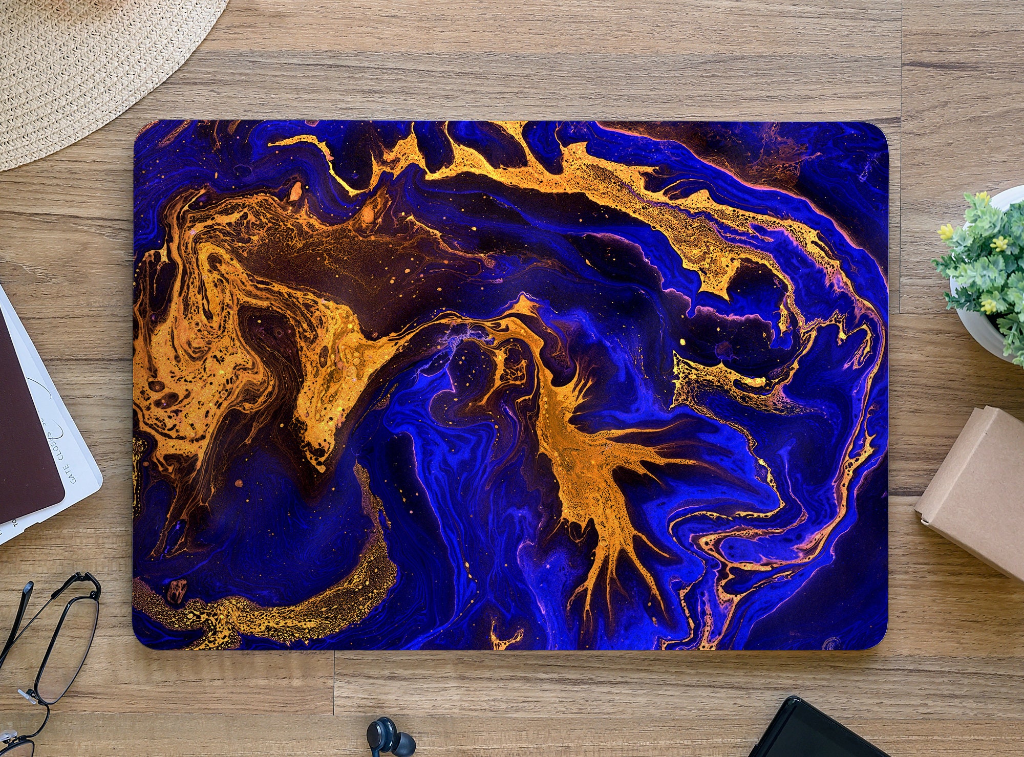 "Skin laptop Splatter di vernice astratta blu e oro // Wallooks UNIVERSAL Laptop Skins si adatt...