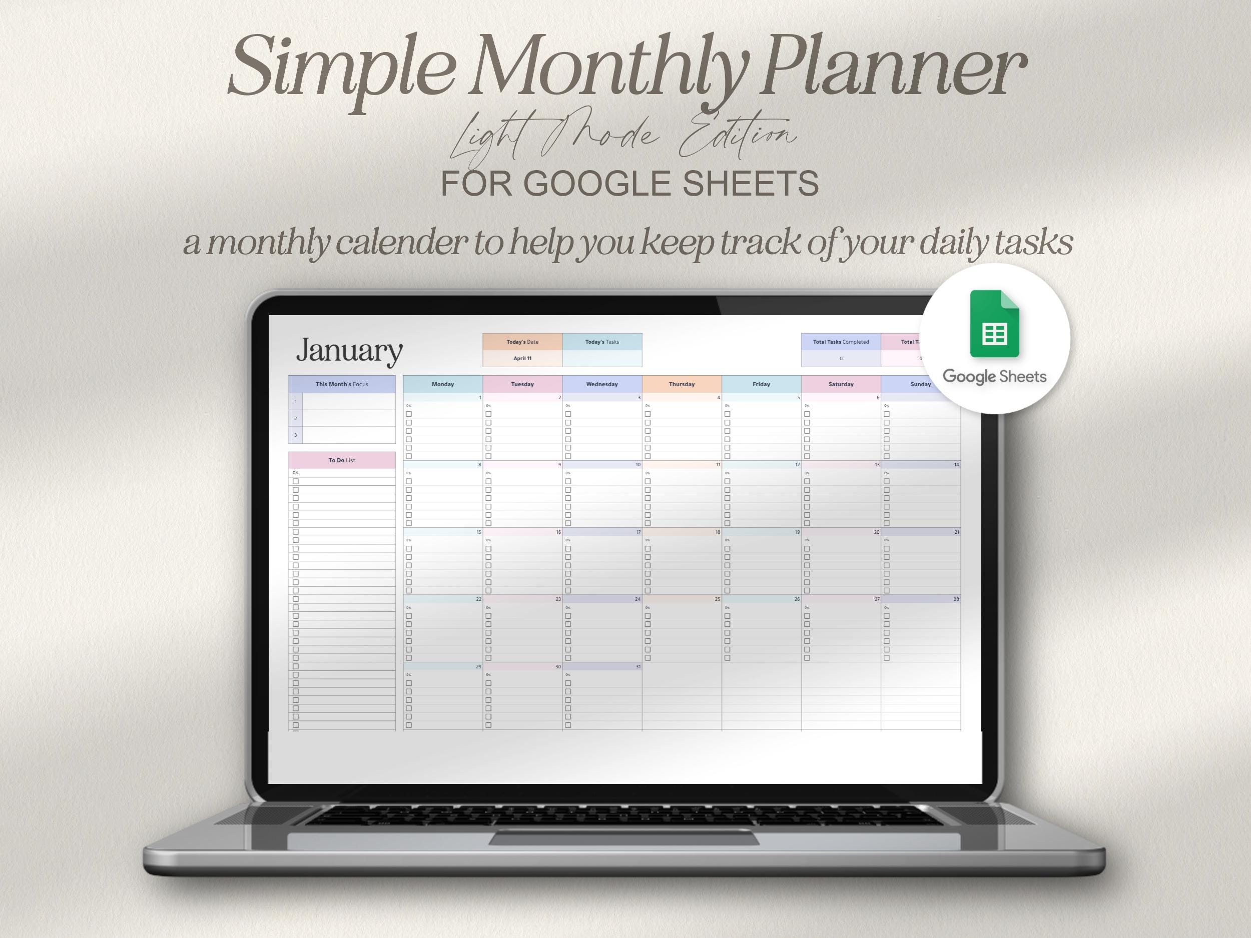 Planner mensile di Google Fogli, Calendario di Google Fogli, Planne...