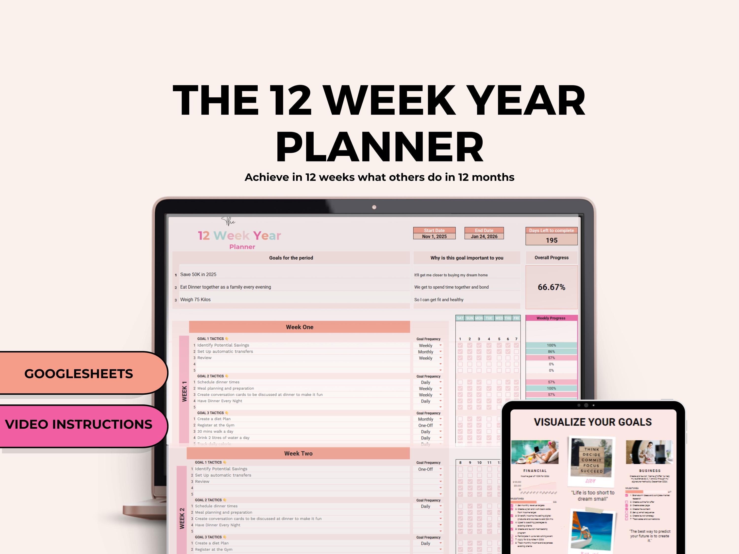 Modello di 12 settimane per l'anno in Fogli Google, Planner per l'a...