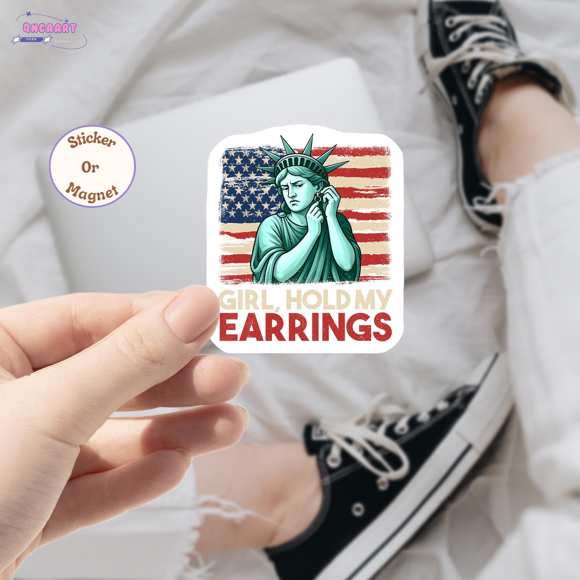 "Adesivo/magnete per auto \"Girl Hold My Earrings Liberty...