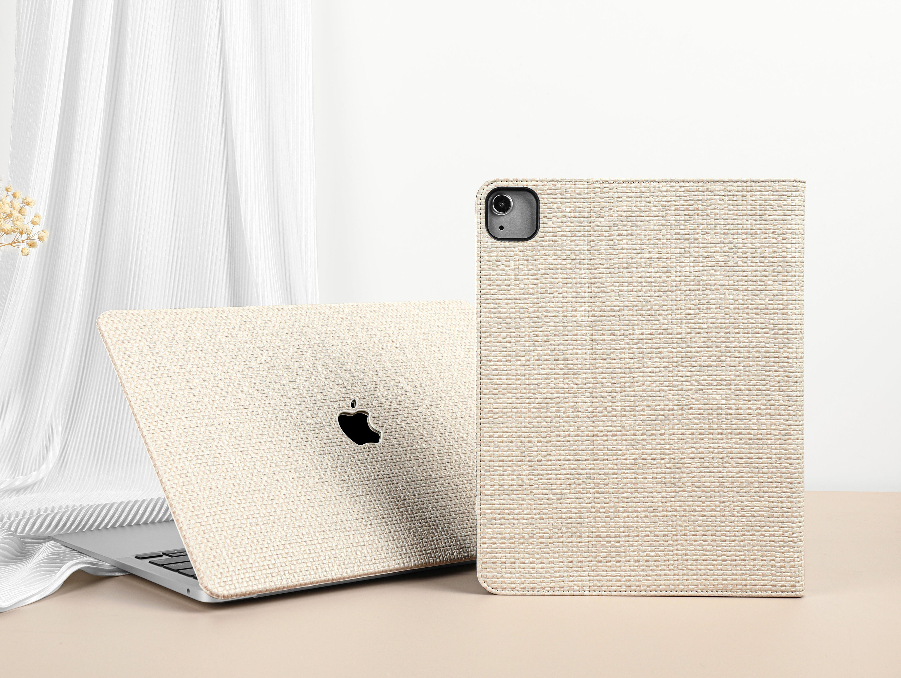 Custodia in cotone e lino beige per iPad Air 4, iPad Pro 12.9, iPad...