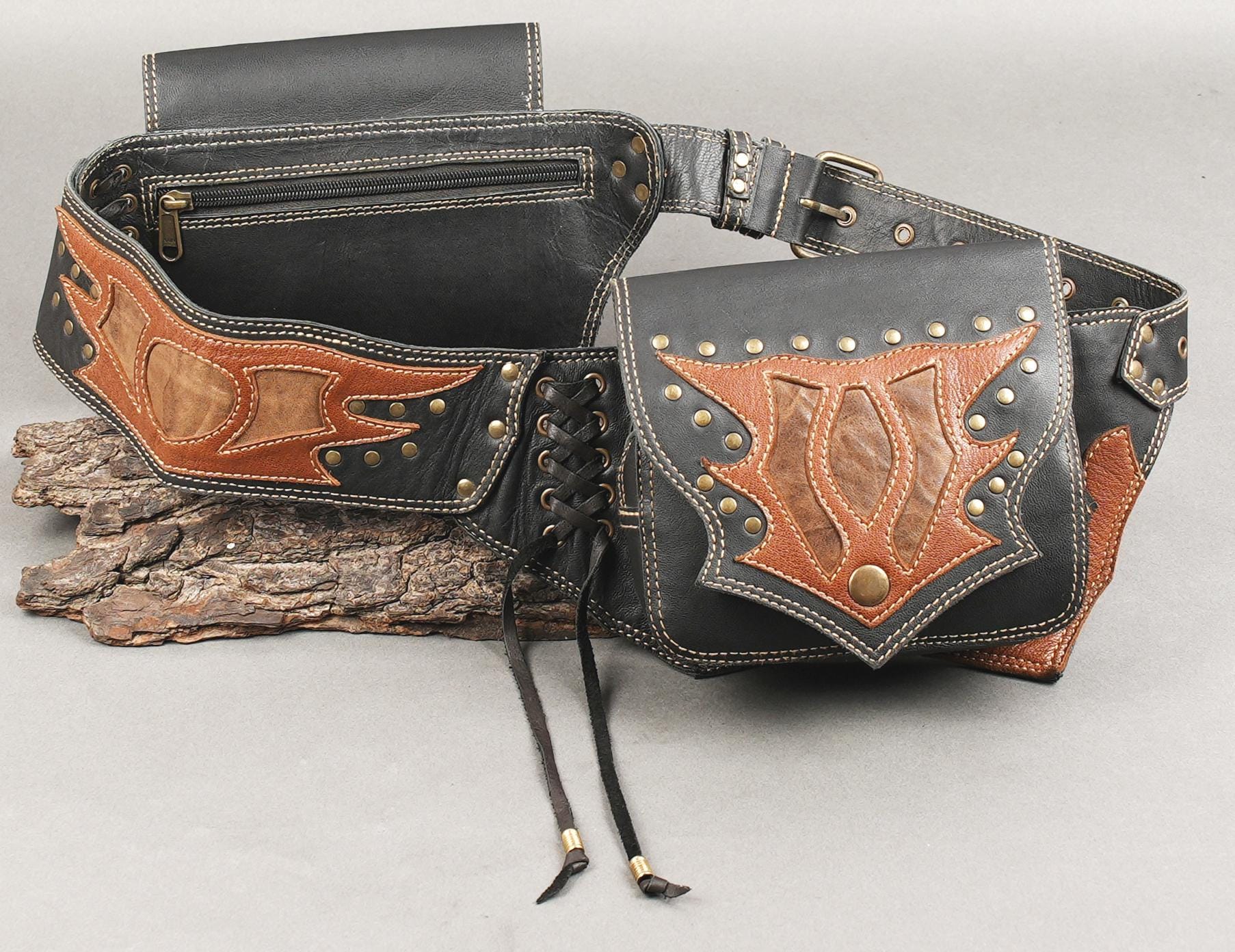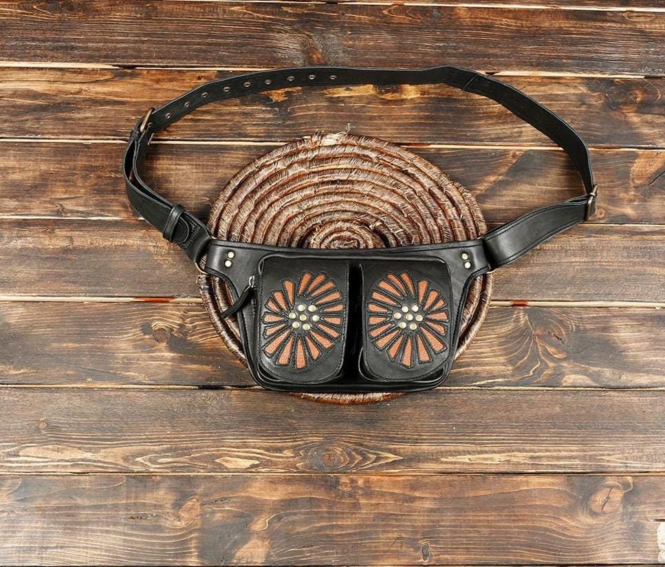 Handmade Leather Waist Bag with Thigh Belt || Festival Fanny Pack |...