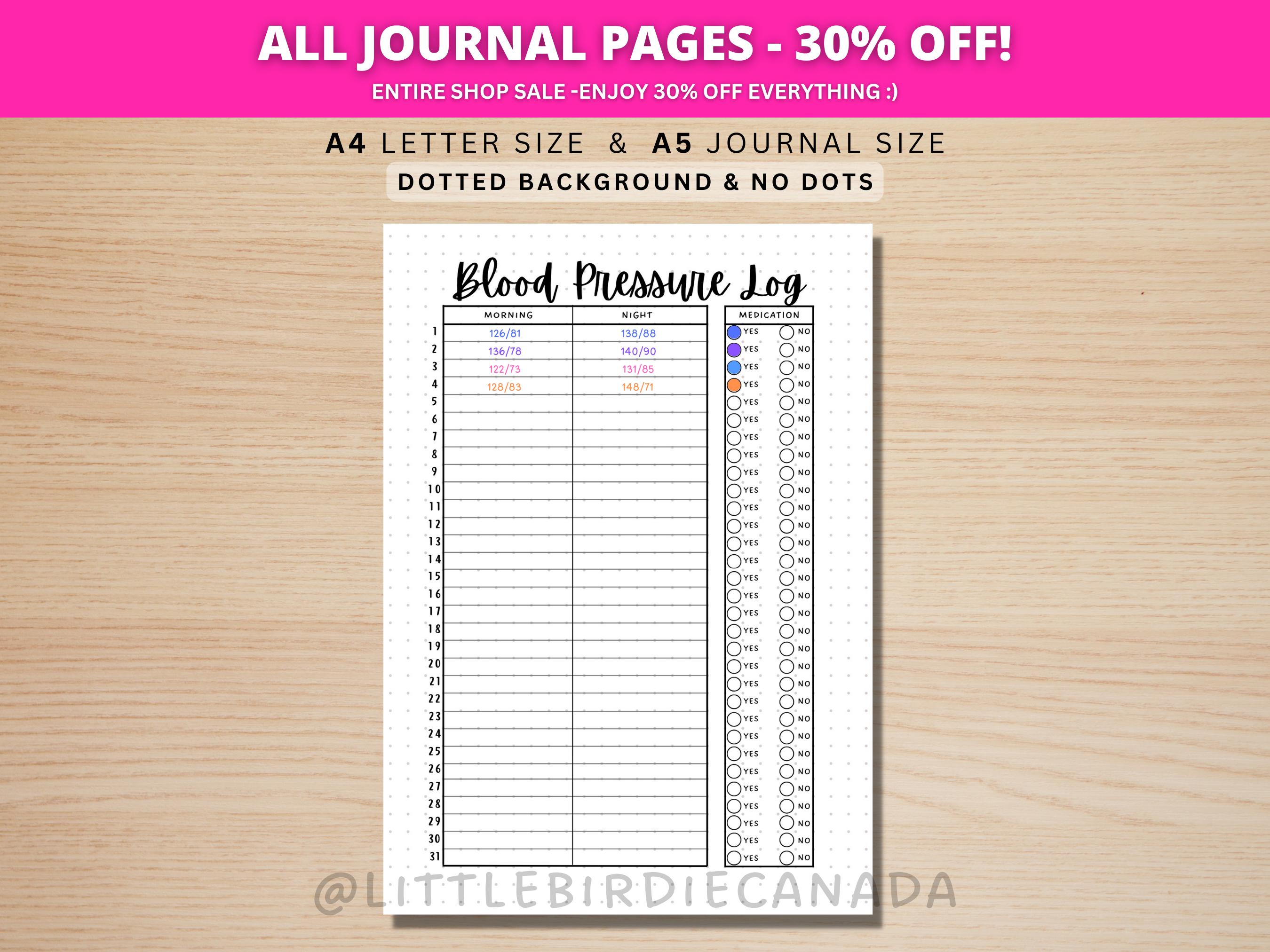 Monitor della pressione sanguigna - Pagina di diario STAMPABILE - R...