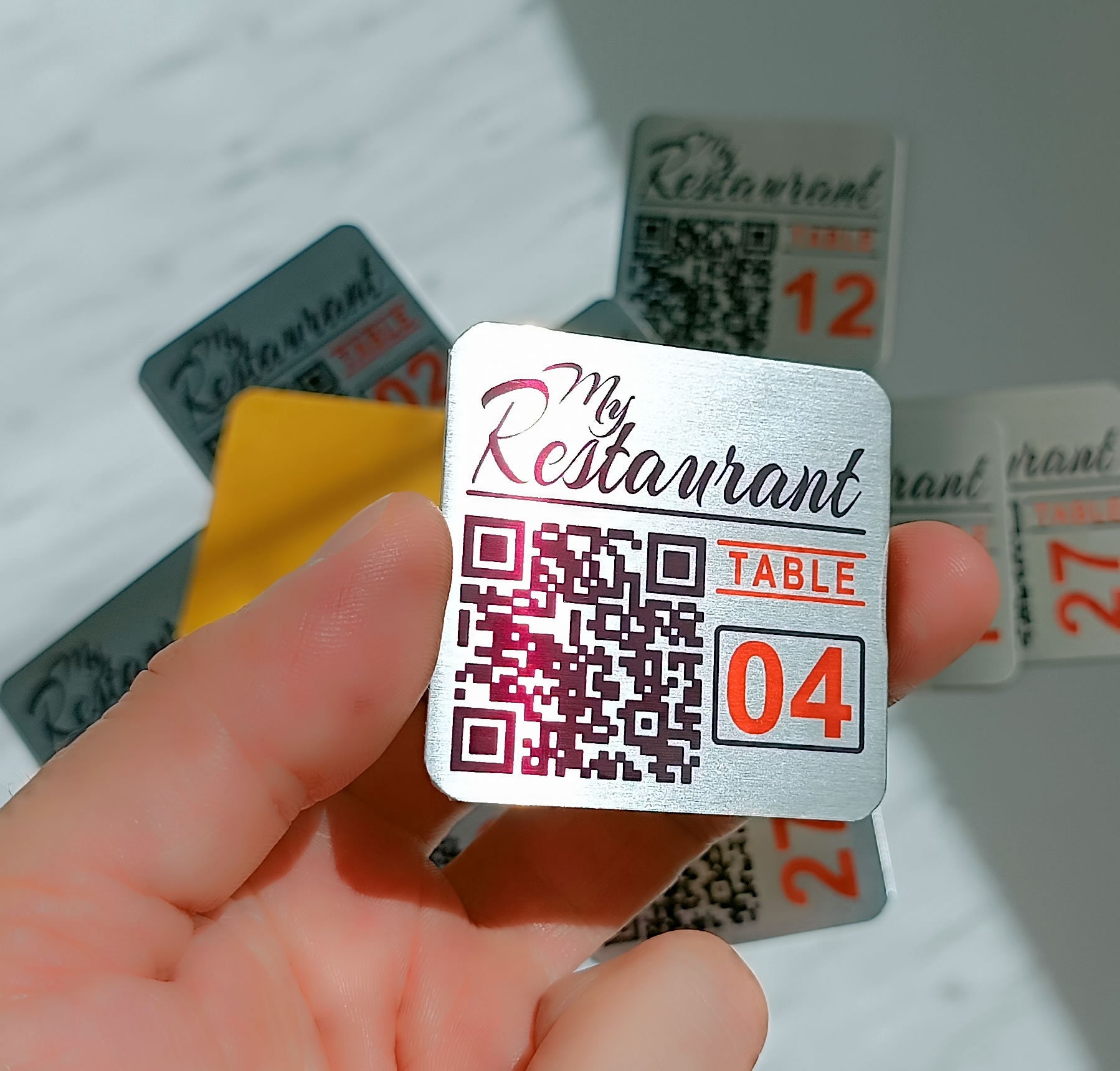 Targhetta personalizzata in metallo con codice QR, numero da tavolo...