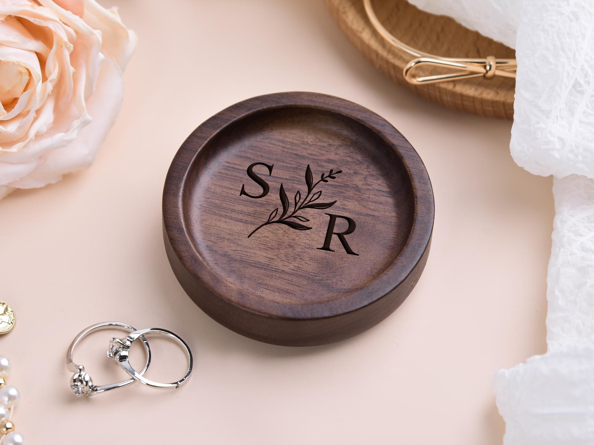 Piatto per anelli rotondo in legno personalizzato, piatto per gioie...