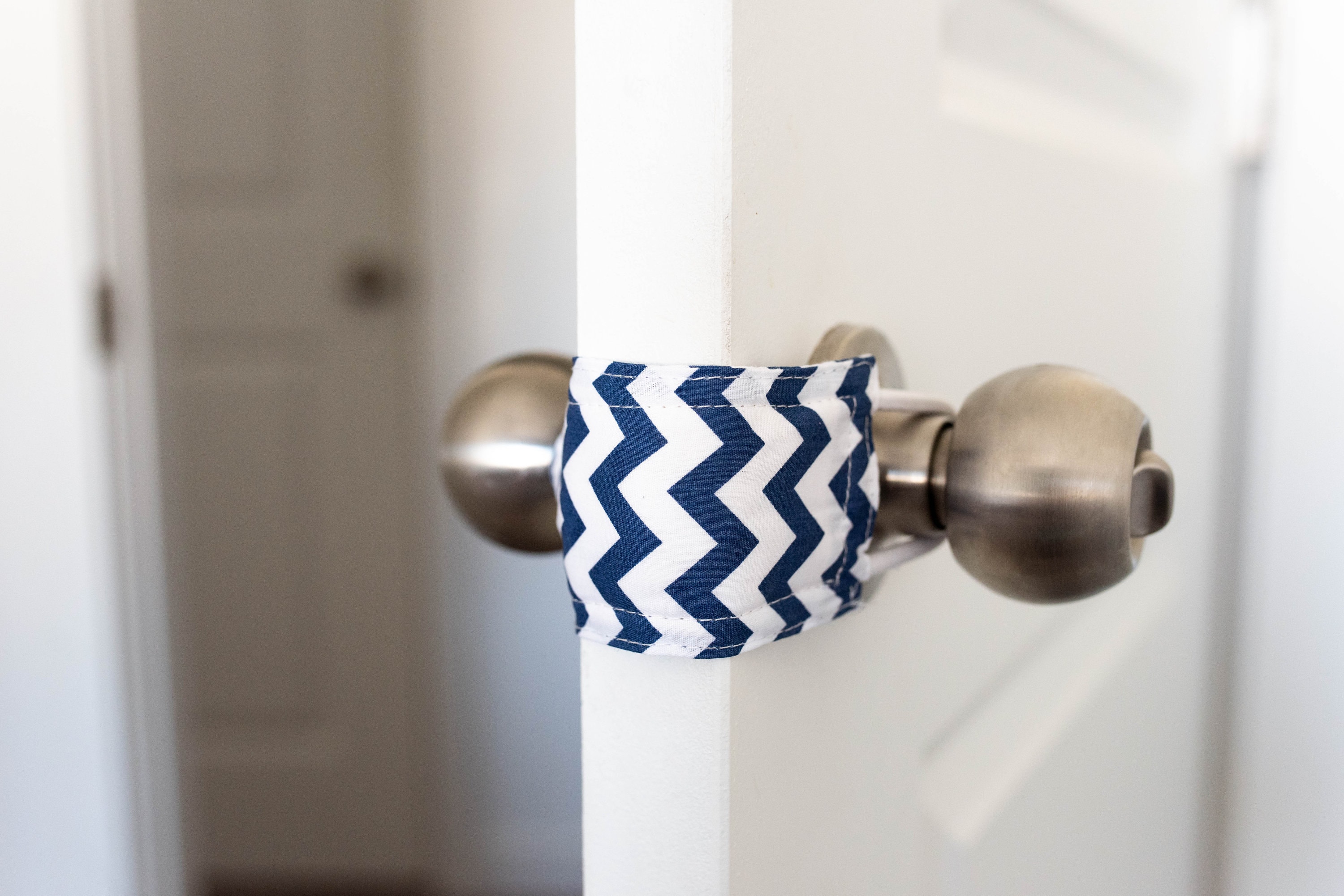Original Latchy Catchy Door Silencer - Navy Chevron - Coperchio chi...